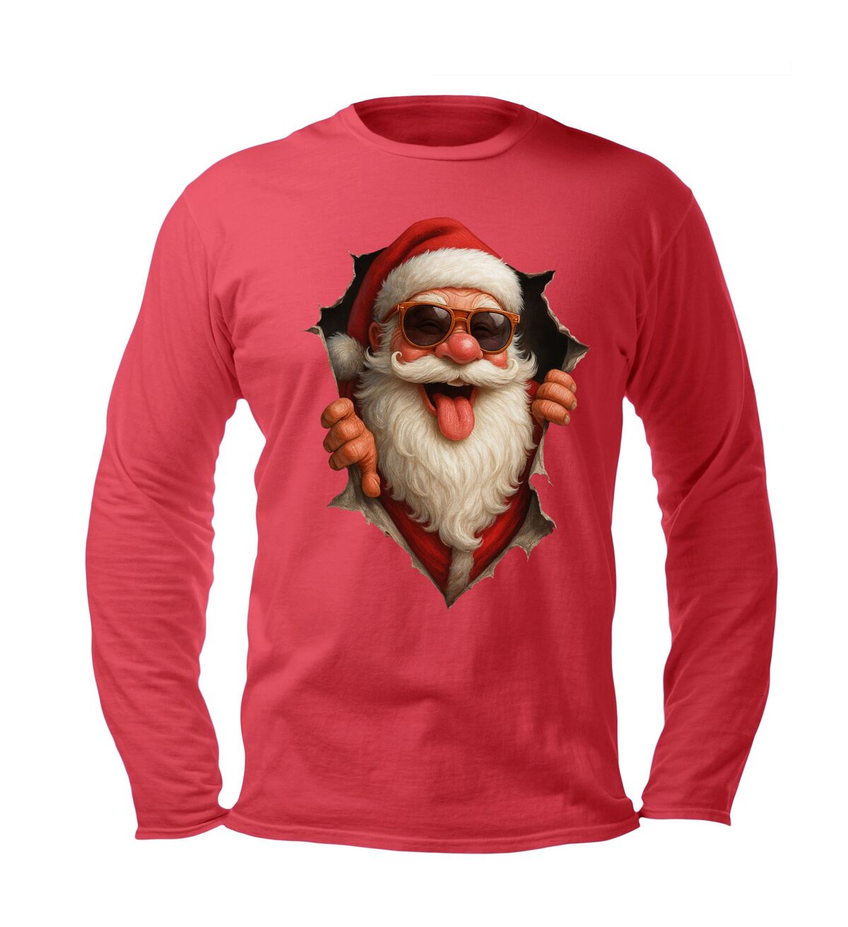 Haal het beste van winterse gezelligheid én humor in huis met deze opvallende long-sleeve featuring onze Santa Breakout print. De kerstman lijkt recht uit de stof te kruipen, compleet met zijn iconische rode muts, strakke shades en warme glimlach. De gedetailleerde illustratie springt heerlijk van de mouw af, terwijl de zachte lange stof zorgt voor ultiem draagcomfort tijdens koude decemberdagen. Perfect voor kerstmarkten, familiediners of gewoon om iedereen een feestelijke lach op het gezicht te toveren.