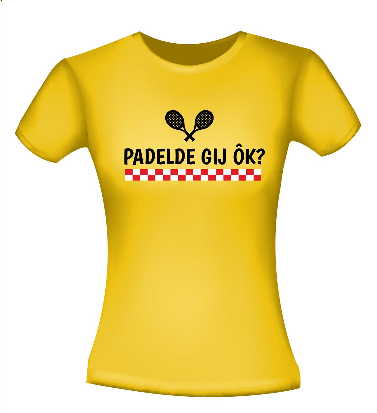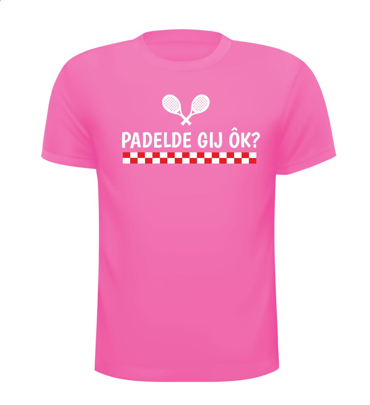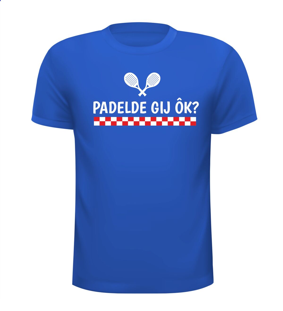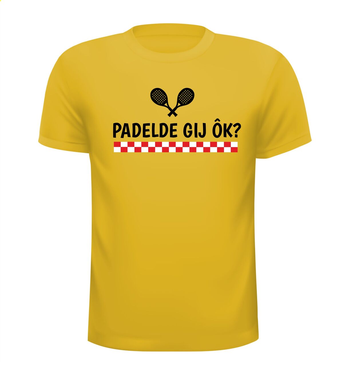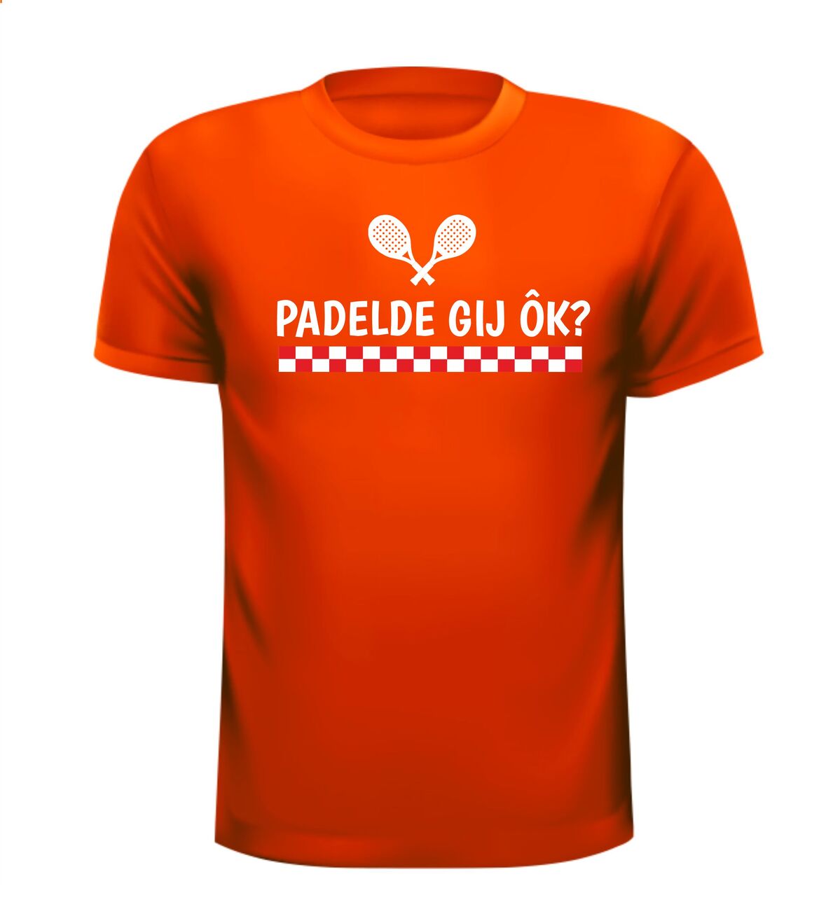 Super leuk T-shirt voor een hem of haar uit Brabant en die aan padel doet? Op het shirt staat: PADELDE GIJ ÔK?