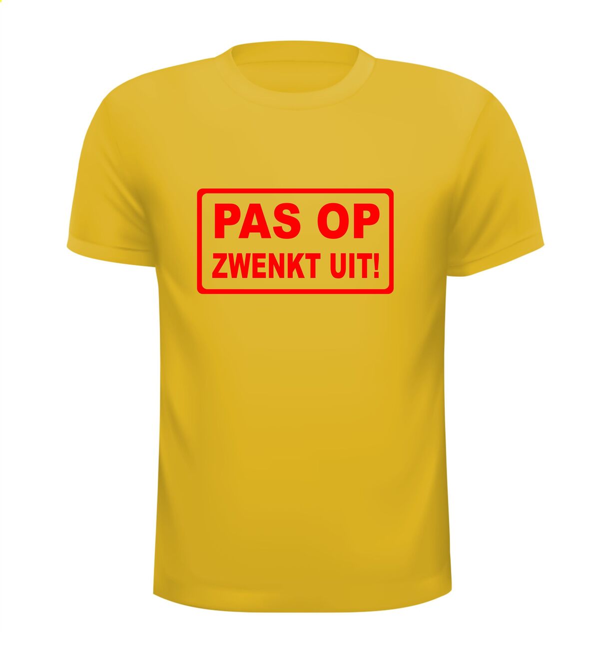 Ook als cadeau is het pas op zwenkt uit shirt een originele keuze. Leuk om te geven aan een vriend, collega of familielid met humor, of als grappige verrassing voor een verjaardag of vrijgezellenfeest. Een opvallend en luchtig statement T-shirt dat gegarandeerd zorgt voor aandacht en plezier.