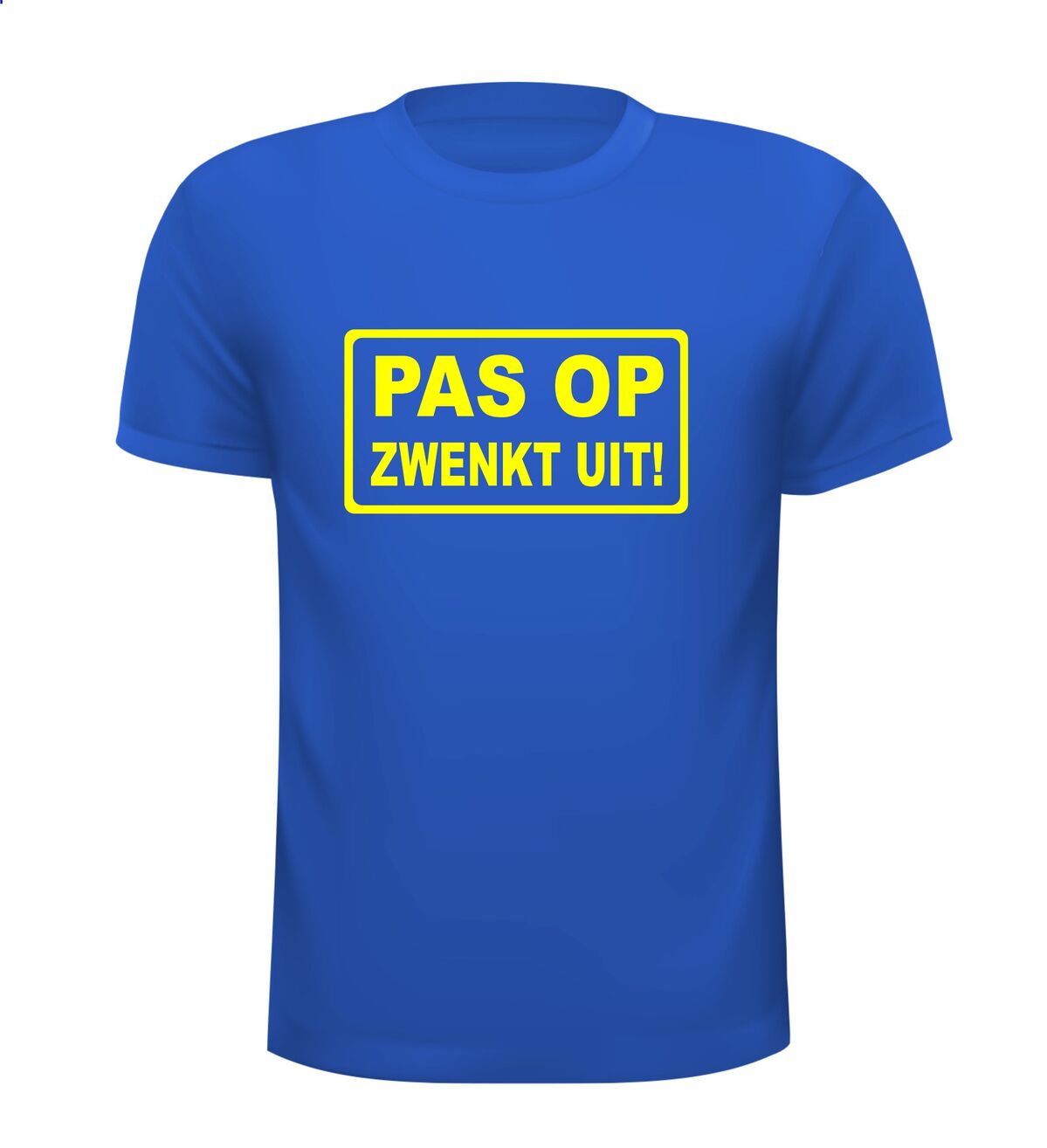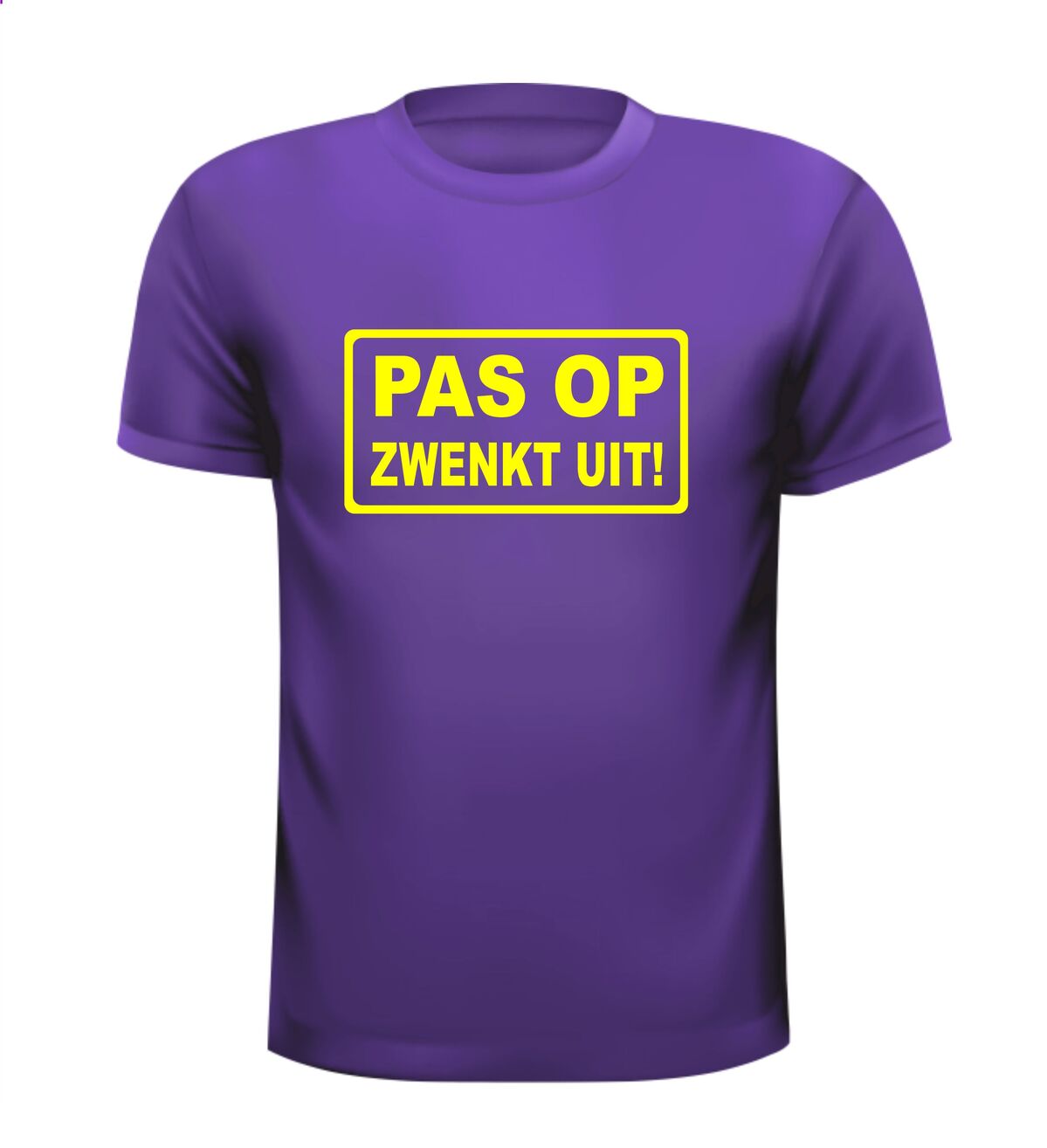 Met dit T-shirt met de tekst paas op zwenkt uit trek je gegarandeerd de aandacht. De tekst speelt op een humoristische manier in op bekende waarschuwingsborden in het verkeer, maar geeft er een grappige en persoonlijke twist aan. Perfect voor iedereen met gevoel voor zelfspot en een knipoog naar zijn of haar eigen rijstijl of karakter.