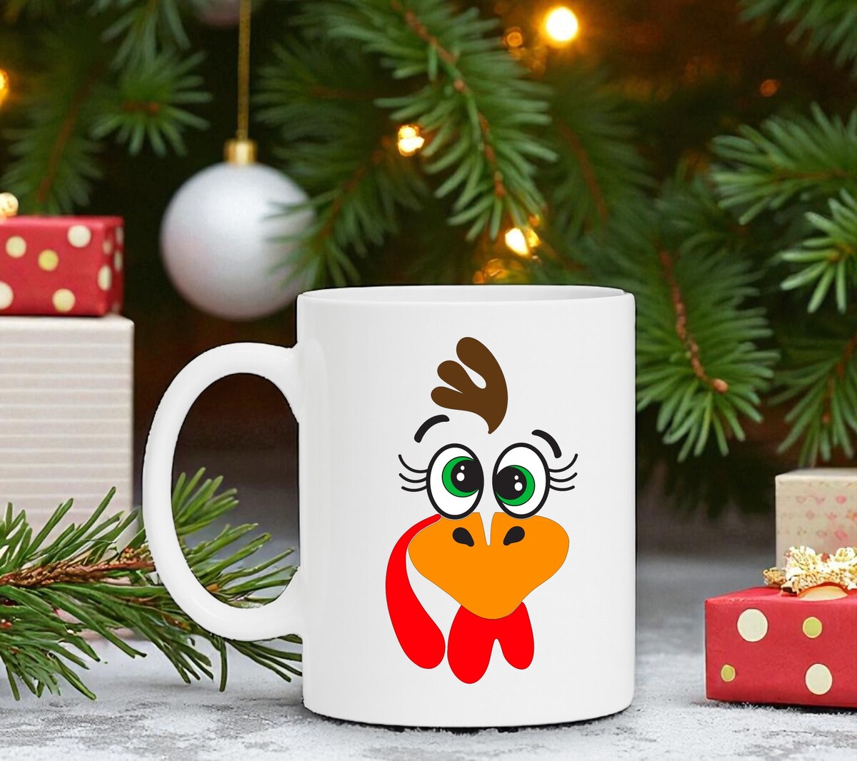 Grappige koffie mok met een cartoon opdruk van een Grappige kalkoen. De witte koffie of thee mok is vaatwasserbestendig en magnetronbestendig. De mok heeft een hoogte van 96mm en een diameter van 80mm.