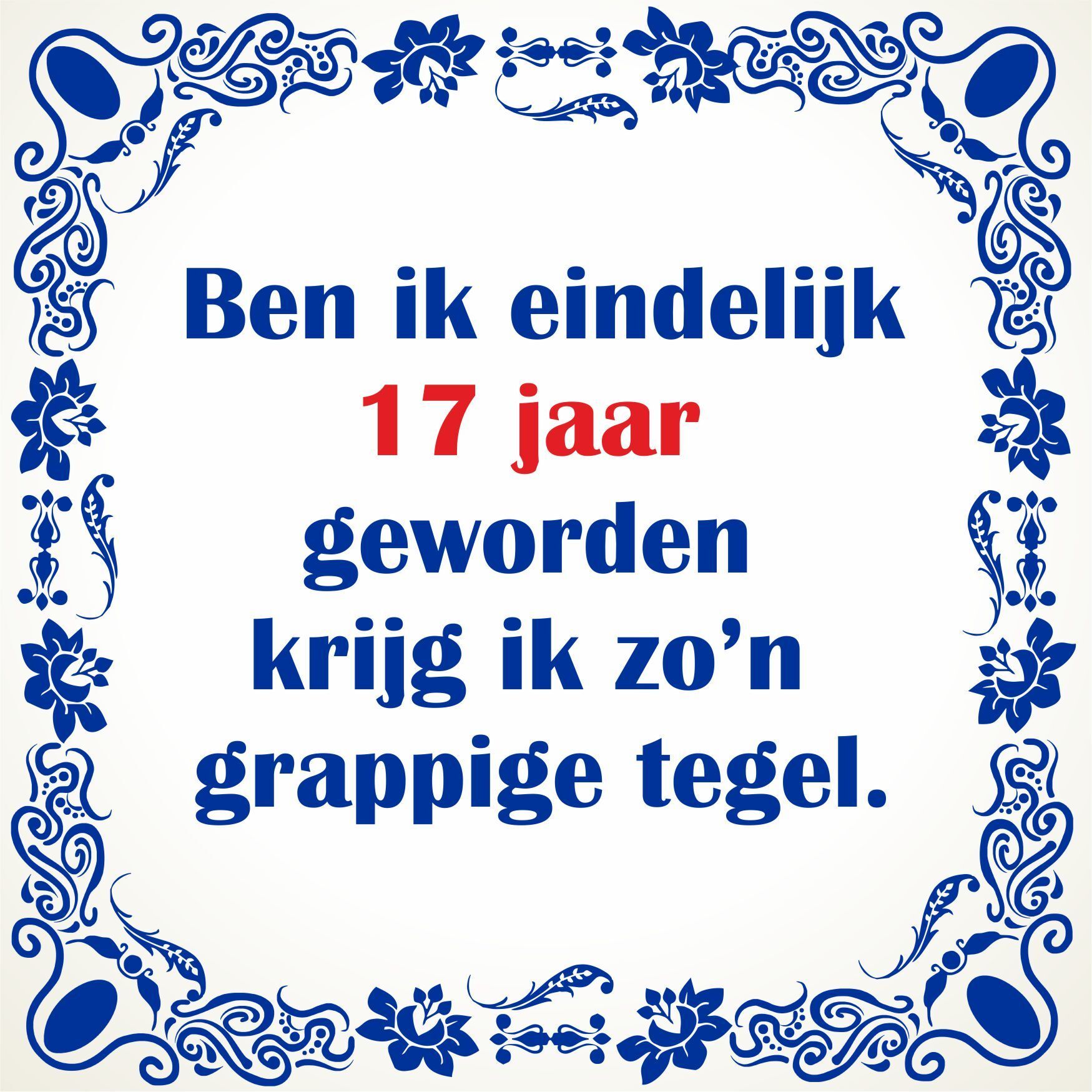 Ben ik eindelijk 17 jaar geworden krijg ik zo'n grappige tegel. Leuk en orgineel om te krijgen en te geven voor een verjaardag, wanneer de jarige zeventien jaar wordt. De spreukentegel heeft een afmeting van 15x15 cm. De tegeltjes worden geleverd zonder bevestigingsmateriaal.