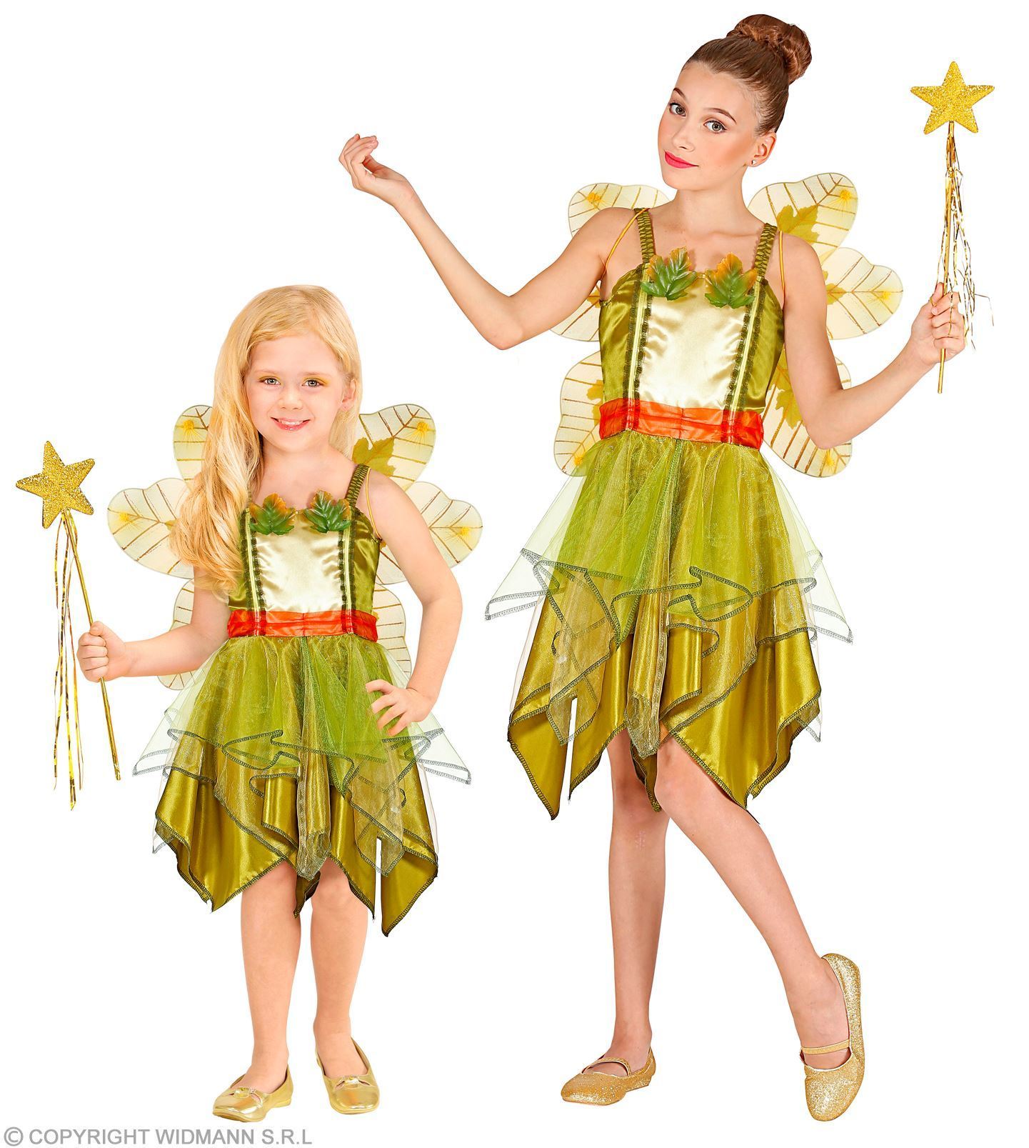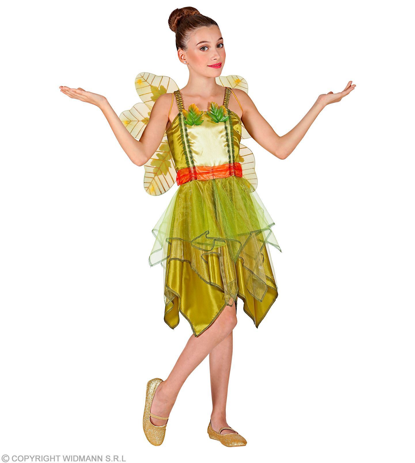 Groene bosfee kostuum bestaande uit: jurk, vleugels.