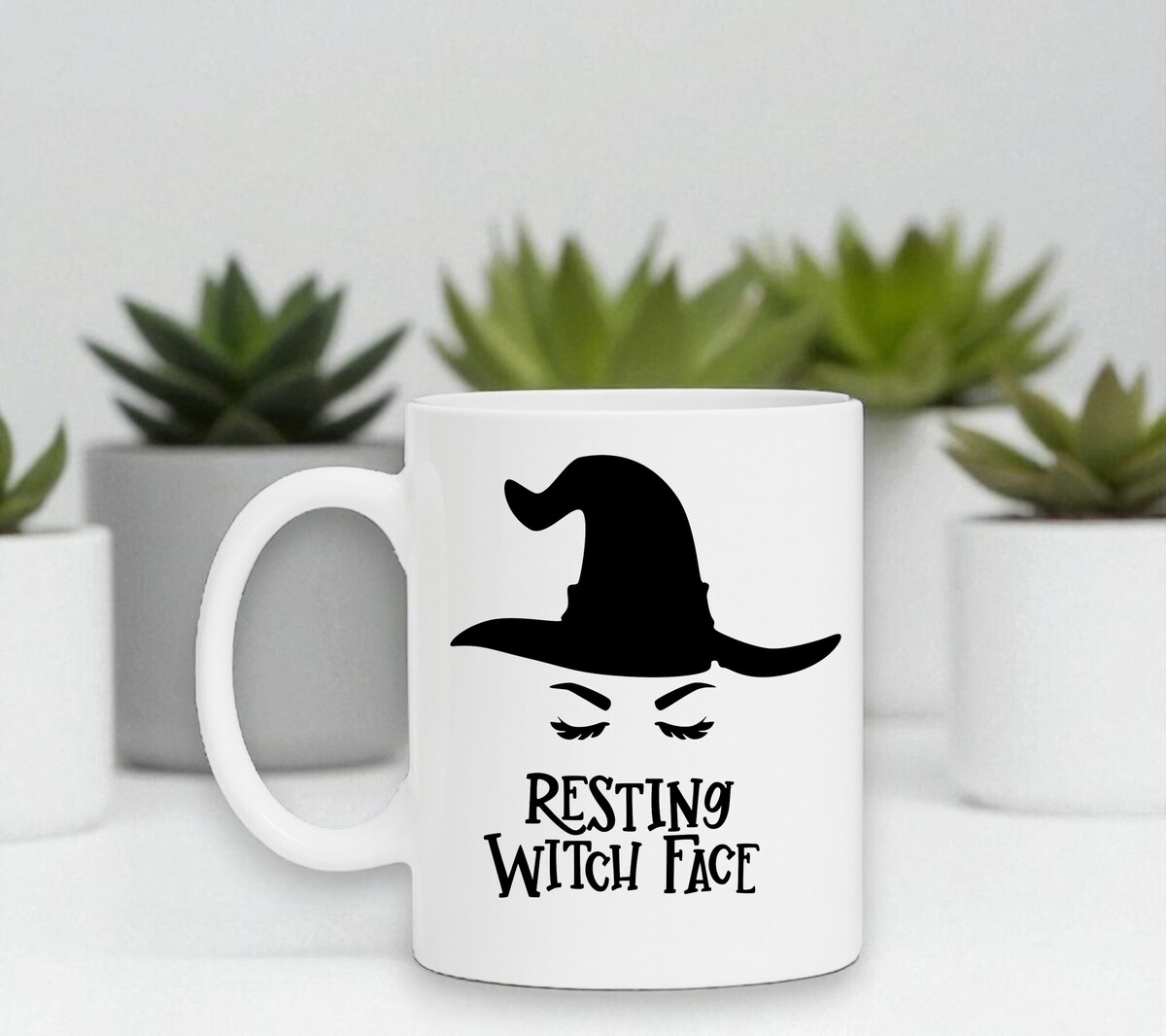Halloween mok Resting witch face Heks pauze rusten relax. De witte koffie of thee mok is vaatwasserbestendig en magnetronbestendig. De mok heeft een hoogte van 96mm en een diameter van 80mm.