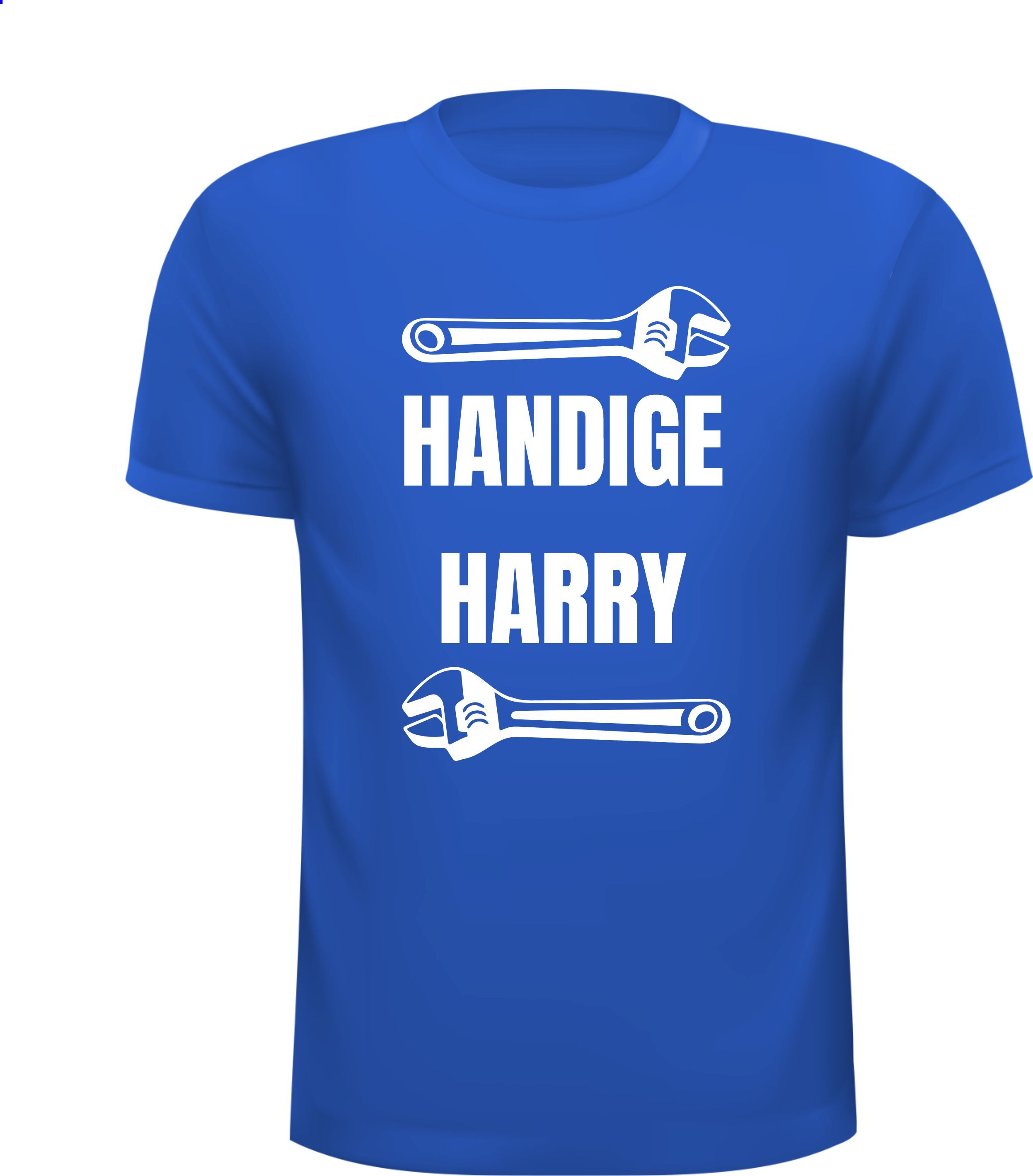 Heb je een handige buurman of heeft je vader twee rechter handen en is geen klus te veel. En je hebt een kadootje nodig dan is dit t-shirt handige Harry wel een echte aanrader. Boven en onder de tekst handige Harry staat een moersleutel afgebeeld om het geheel nog duidelijker te maken dat je met een zeer handig iemand te maken heb.