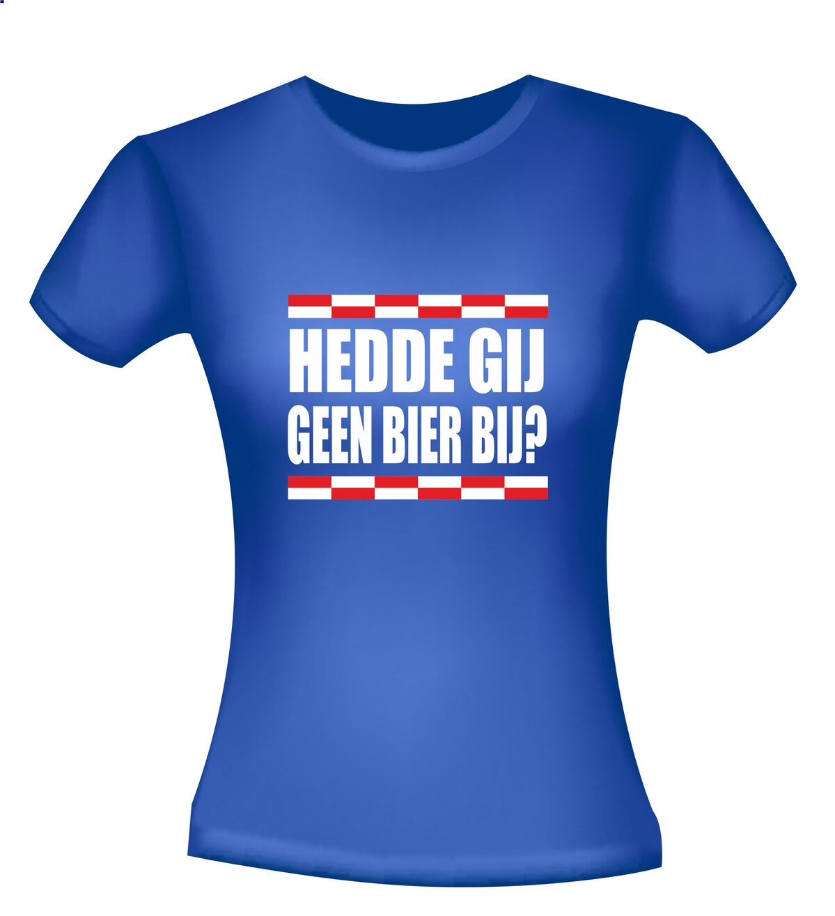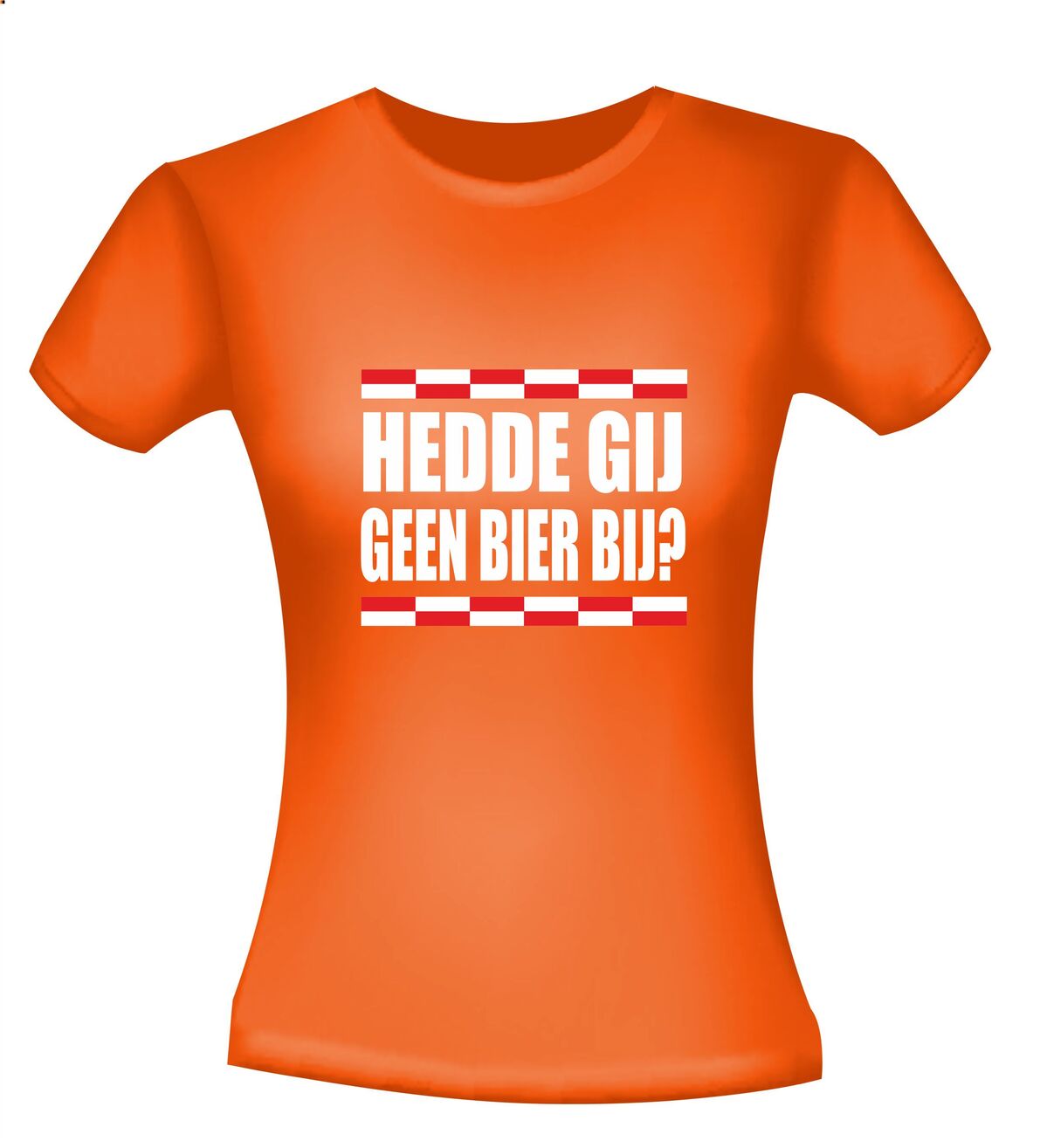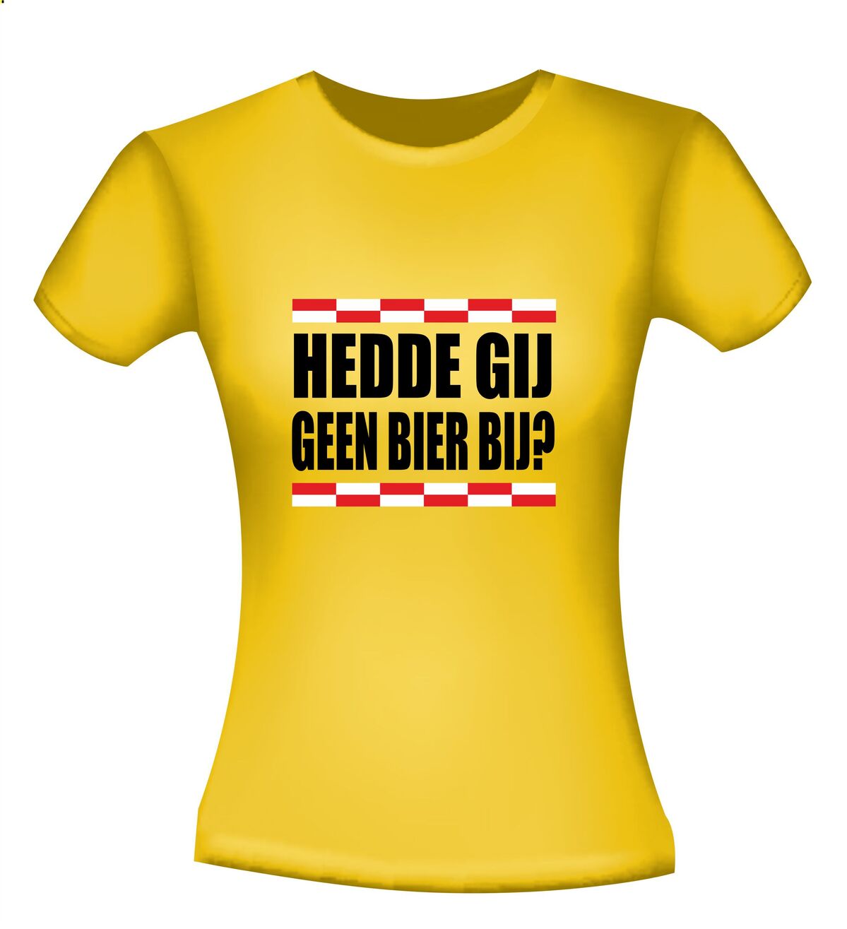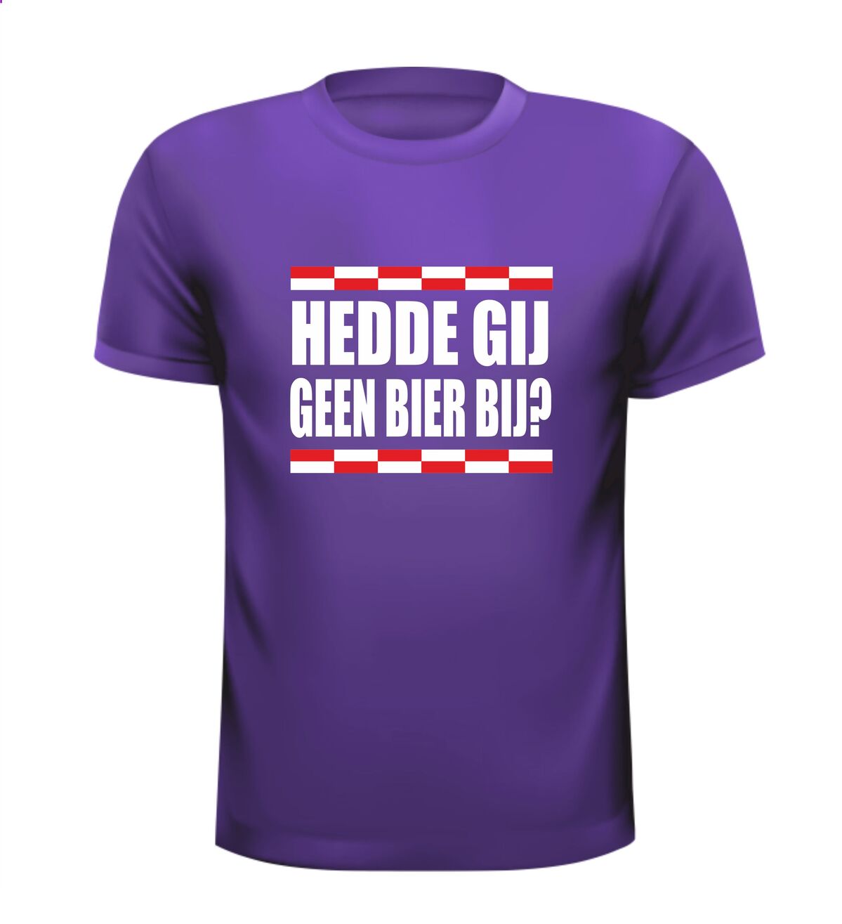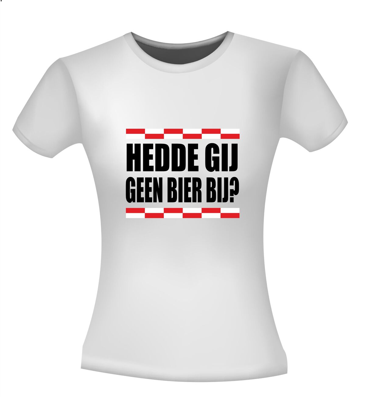 De grappigste uitspraken in het mooi Brabants dialect hebben wij voor je op een T-shirt gezet. Samen met de kleuren van Brabant rood met witte blokken. De tekst op dit T-shirt is: Hedde gij geen bier bij (Dat kan natuurlijk niet.)