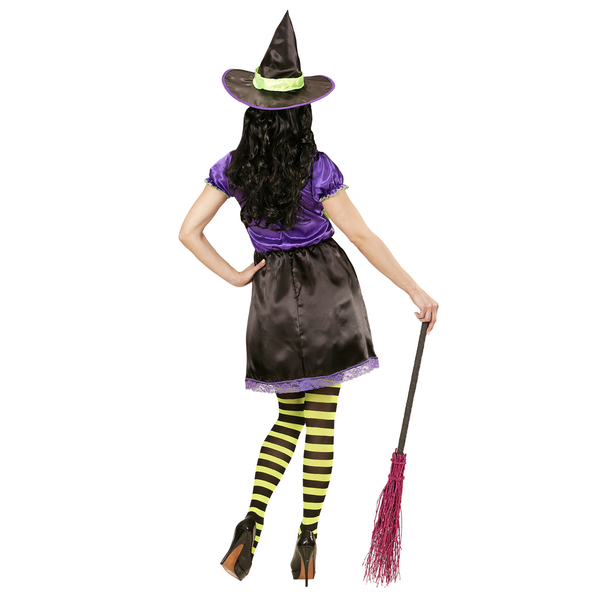 Met dit heksen verkleedpak vrolijk jij de Halloween party weer op, en bovendien val je met dit kleurrijke heksen outfit op in de mensen massa. Dit kleurrijker heksen kostuum bestaat uit heksenjurk en heksenhoed
