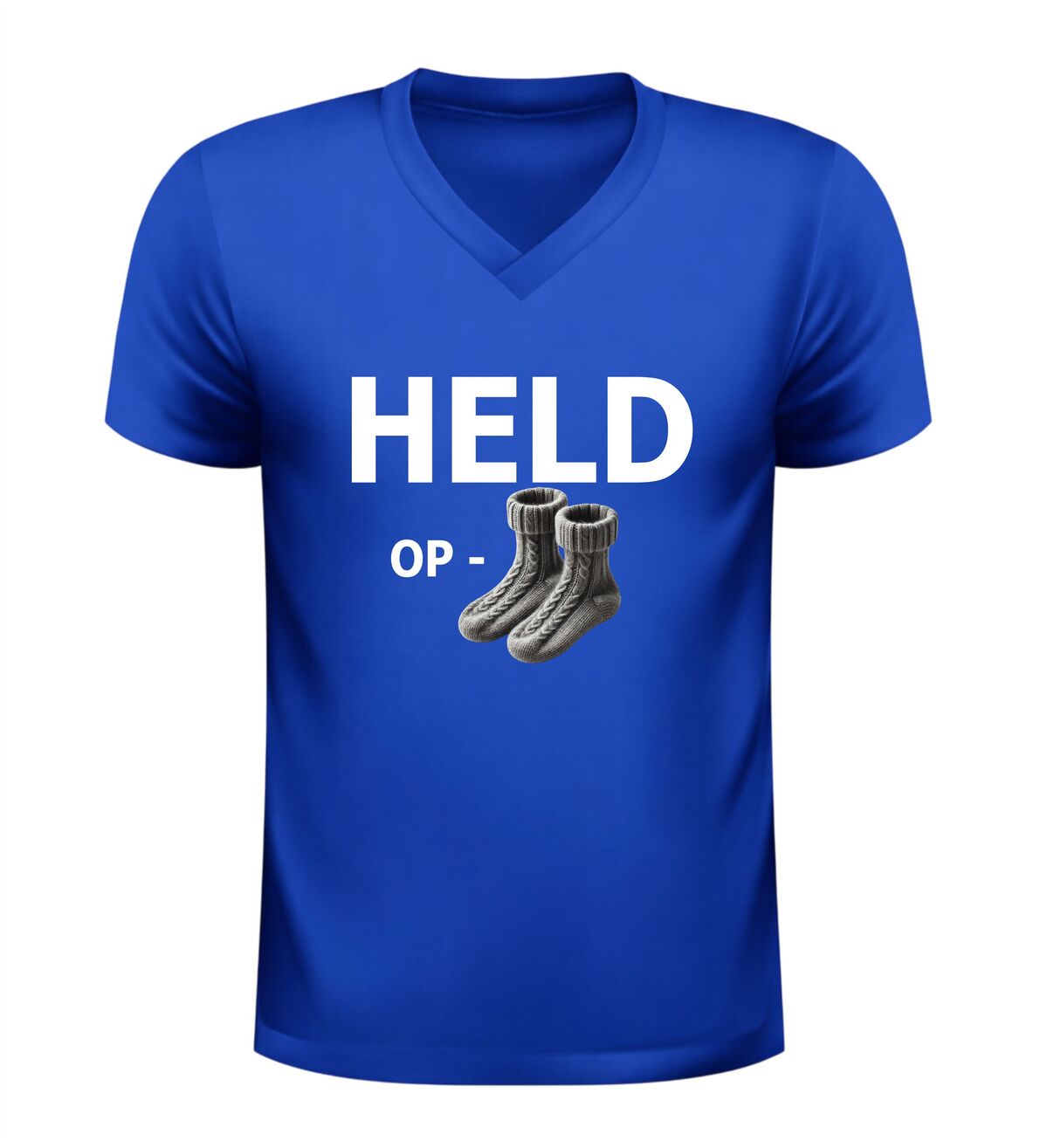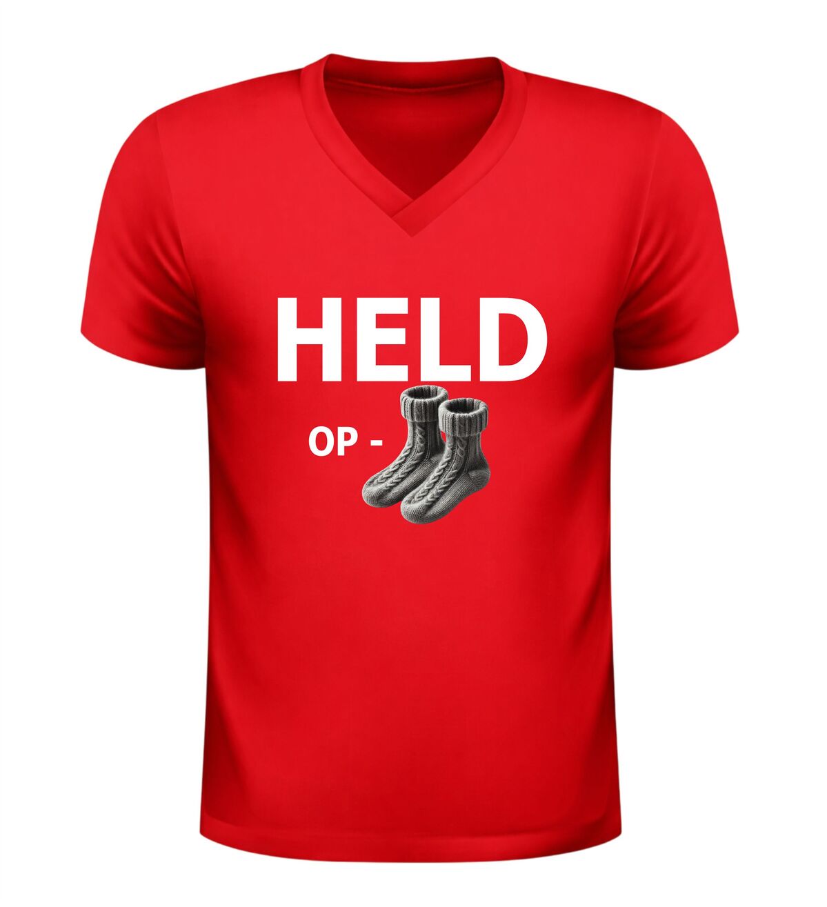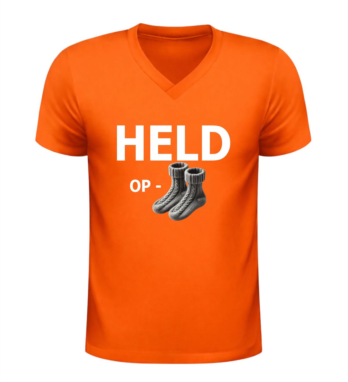 Dit Held op sokken v-hals T-shirt is het perfecte shirt voor feestjes, borrels en andere gezellige momenten. De grappige Nederlandse tekst held op sokken in combinatie met de sokken-afbeelding zorgt meteen voor een lach en maakt dit shirt een echte blikvanger. Dankzij de comfortabele pasvorm en de moderne V-hals draag je het shirt moeiteloos tijdens een avond uit, een festival of een informeel feest. Dit V-hals T-shirt met humoristische tekst is ideaal voor mensen die houden van grappige kleding met een speelse uitstraling en is ook een leuk cadeau voor feestliefhebbers.