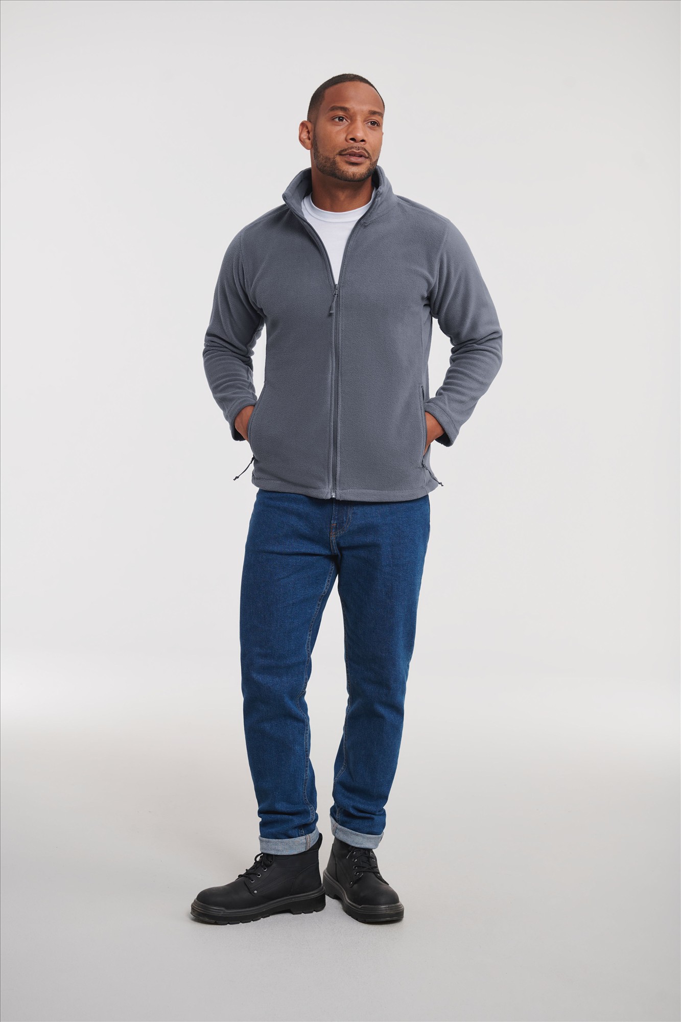 Heren fleece jas met elastisch koord met stoppers in onderboord. Pluisvrij en een gladder oppervlak voor het gemakkelijk te kunnen borduren van de fleece. Deze fleece is van fijn gebreid materiaal met een hoge dichtheid en biedt veel warmte bij weinig volume. Heeft 2 zijzakken met rits en ingezette mouwen. Merk: Russell Men Full Zip Outdoor Fleece 9870M. Materiaal:100% Polyester. Dikte:320 g/m2. Land van herkomst:China. De foto van het model dient ter illustratie van de sfeer. Gelieve geen aandacht te besteden aan de kleur.