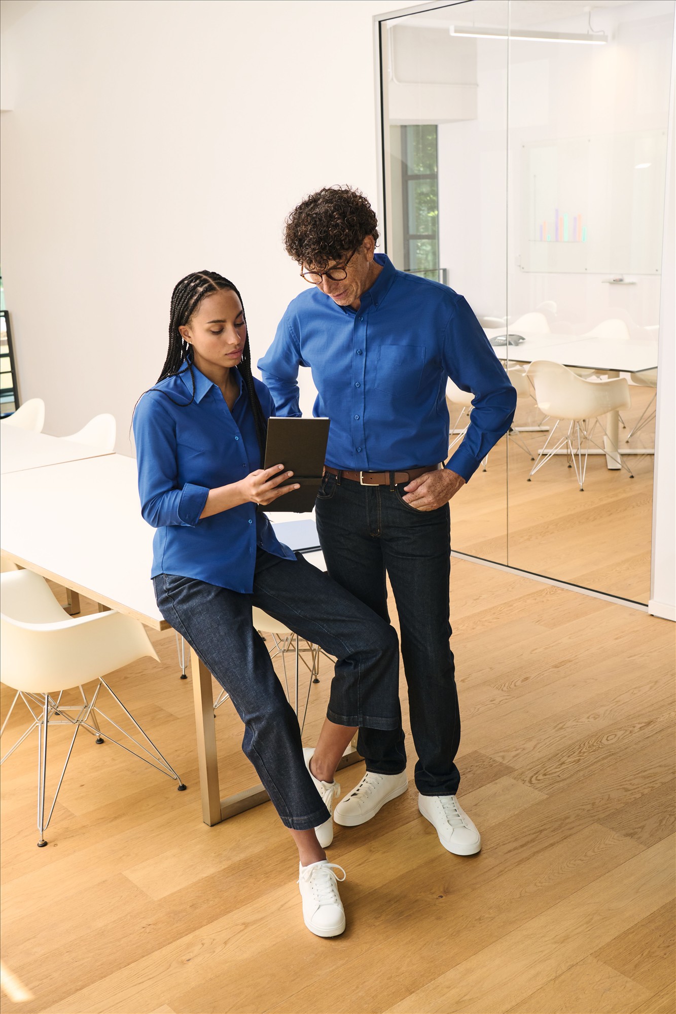 Heren overhemd royal blauw lange mouw met halfronde zoomafwerking en versterkte button down kraag. Mooi klassiek overhemd met borstzak en schouderstuk met twee evenwijdige plooien aan achterzijde heeft afgeronde manchetten met twee ton sur ton knopen. Goed hemd voor zowel zakelijk als prive gelegenheden. Easy care en gaat t/m 6XL. Merk: Russell Men LSL Clas. Oxford Shirt. Materiaal:70% Cotton - 30% Polyester Oxford. Dikte:130 g/m2. Land van herkomst:Bangladesh. e foto van het model dient ter illustratie van de sfeer. Gelieve geen aandacht te besteden aan de kleur.
