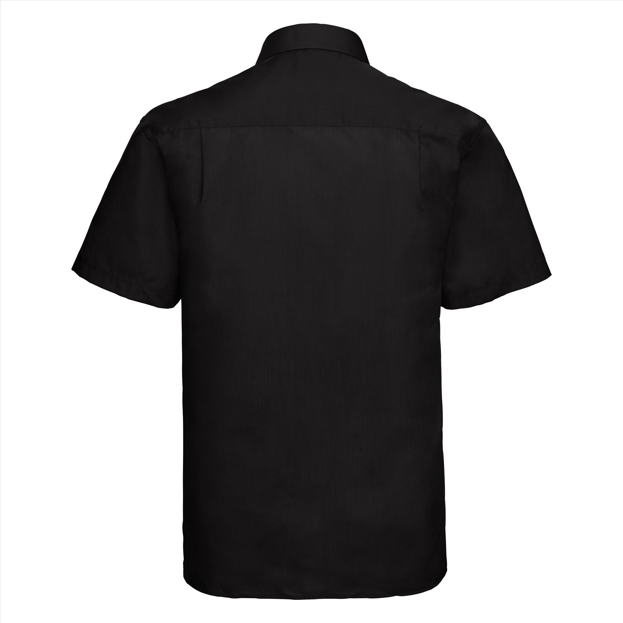 Heren overhemd zwart korte mouw met ton sur ton knoopjes en een rechte onderzijde. Mooi klassiek overhemd korte mouw met op de linker borst een zakje en heeft ook een ingezet schouderstuk met 2 rugplooien. Mooi sterk hemd. Easy care en gaat t/m 4XL. Merk: Russell Men Shortsleeve Clas. Polycot. Poplin Shirt. Materiaal:65% Polyester - 35% Cotton Poplin. Dikte: 110 g/m2. Land van herkomst:Bangladesh. De foto van het model dient ter illustratie van de sfeer. Gelieve geen aandacht te besteden aan de kleur.