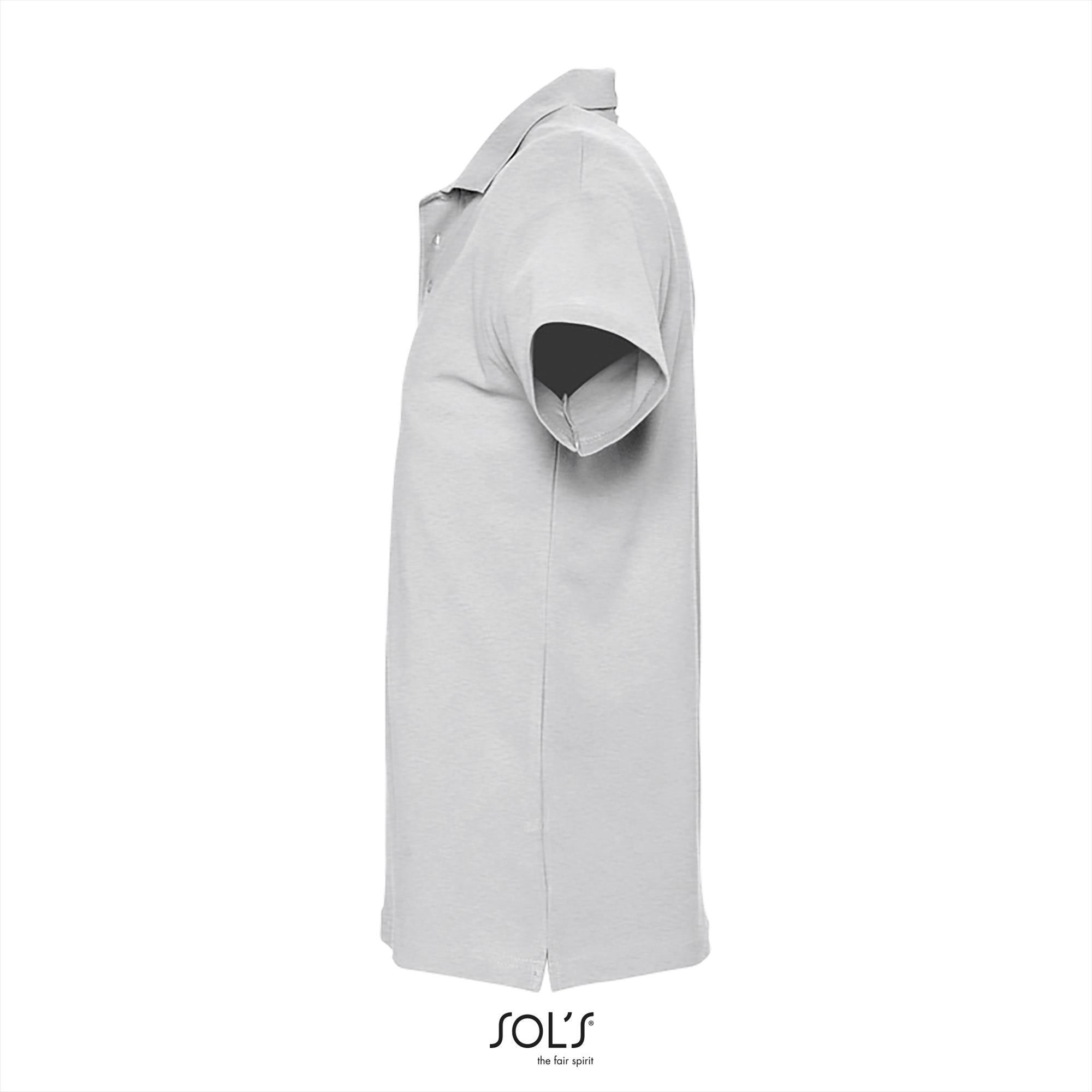 Heren polo asgrauw korte mouw. Klassieke heren polo met korte mouw. Piqué. Verstevigingsband in nek. Rib kraag. Versterkte knoopsluiting. 3-knoopsluiting kleur op kleur. Rechte zoom met zijsplitjes en zijnaad. Foto met model erop is een sfeer foto kleur buiten beschouwing houden. Merk: SOL'S Spring II. Materiaal:100% Combed Ringspun Cotton. Dikte:210 g/m2. Land van herkomst:Bangladesh.