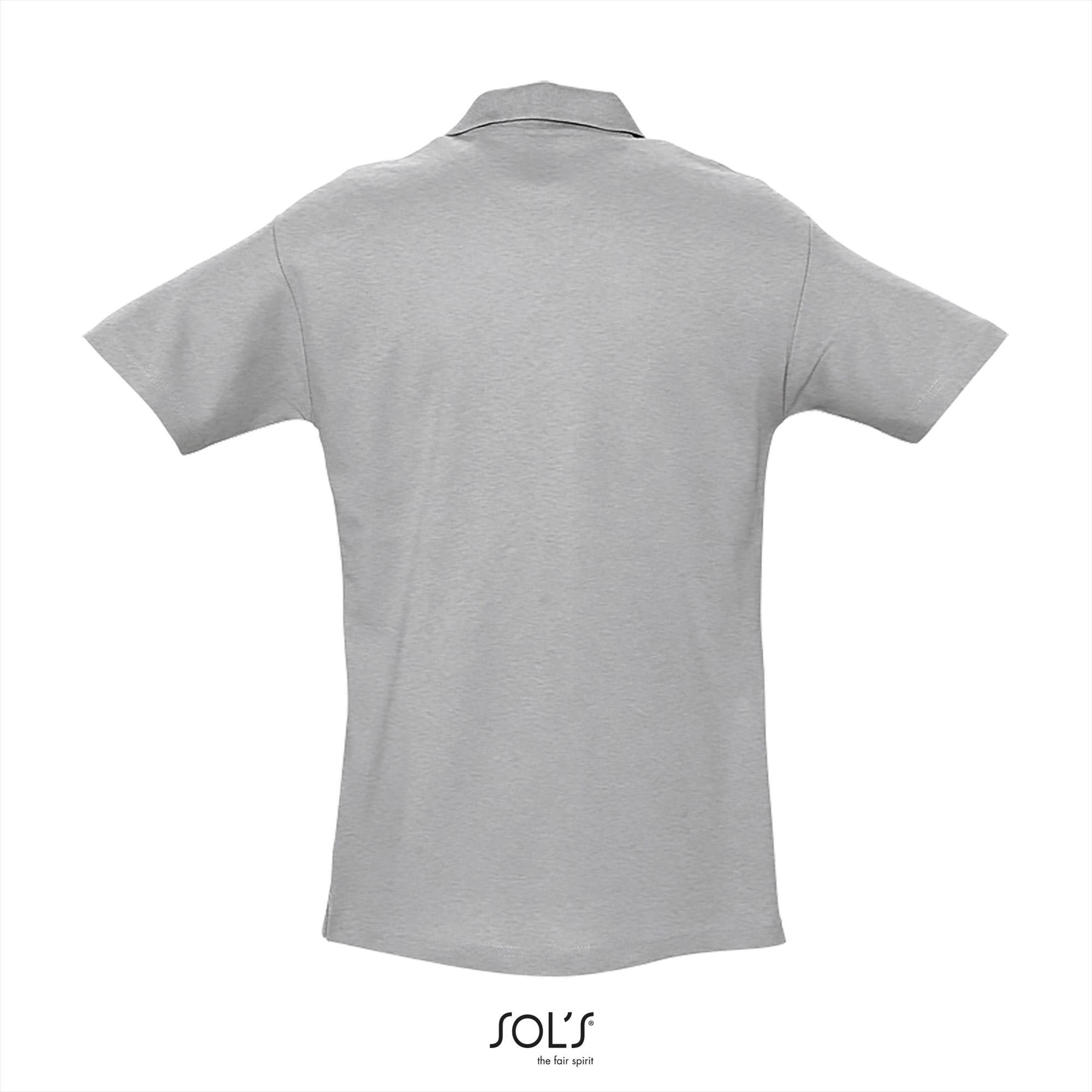 Heren polo grijs melange korte mouw. Klassieke heren polo met korte mouw. Piqué. Verstevigingsband in nek. Rib kraag. Versterkte knoopsluiting. 3-knoopsluiting kleur op kleur. Rechte zoom met zijsplitjes en zijnaad. Foto met model erop is een sfeer foto kleur buiten beschouwing houden. Merk: SOL'S Spring II. Materiaal:100% Combed Ringspun Cotton. Dikte:210 g/m2. Land van herkomst:Bangladesh.
