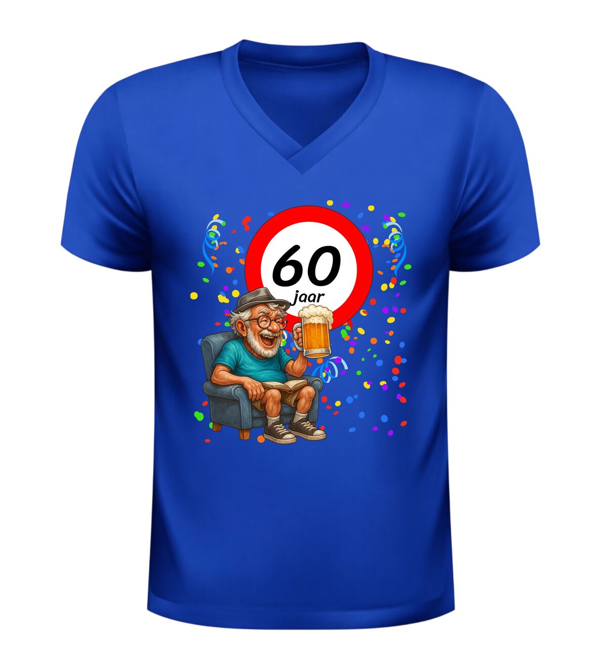Met dit heren v-hals shirt 60 jaar laat je zien dat ouder worden vooral betekent genieten, lachen en proosten. Een feestelijk verjaardagsshirt dat comfort en humor samenbrengt en elke zestigste verjaardag extra memorabel maakt.