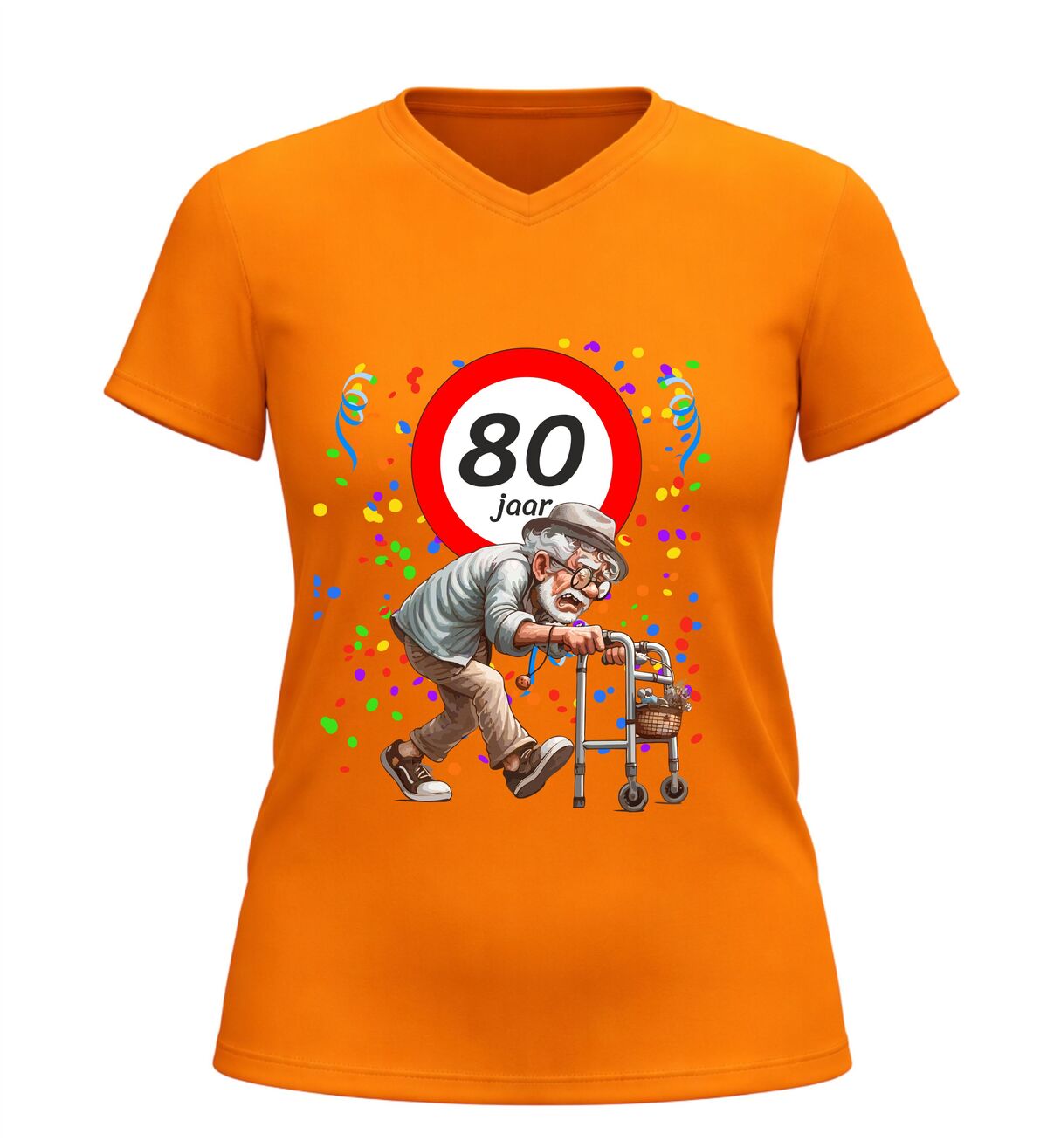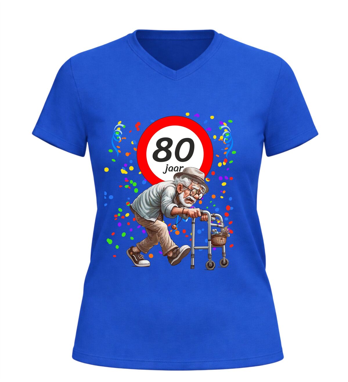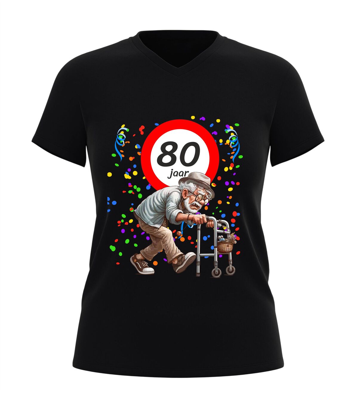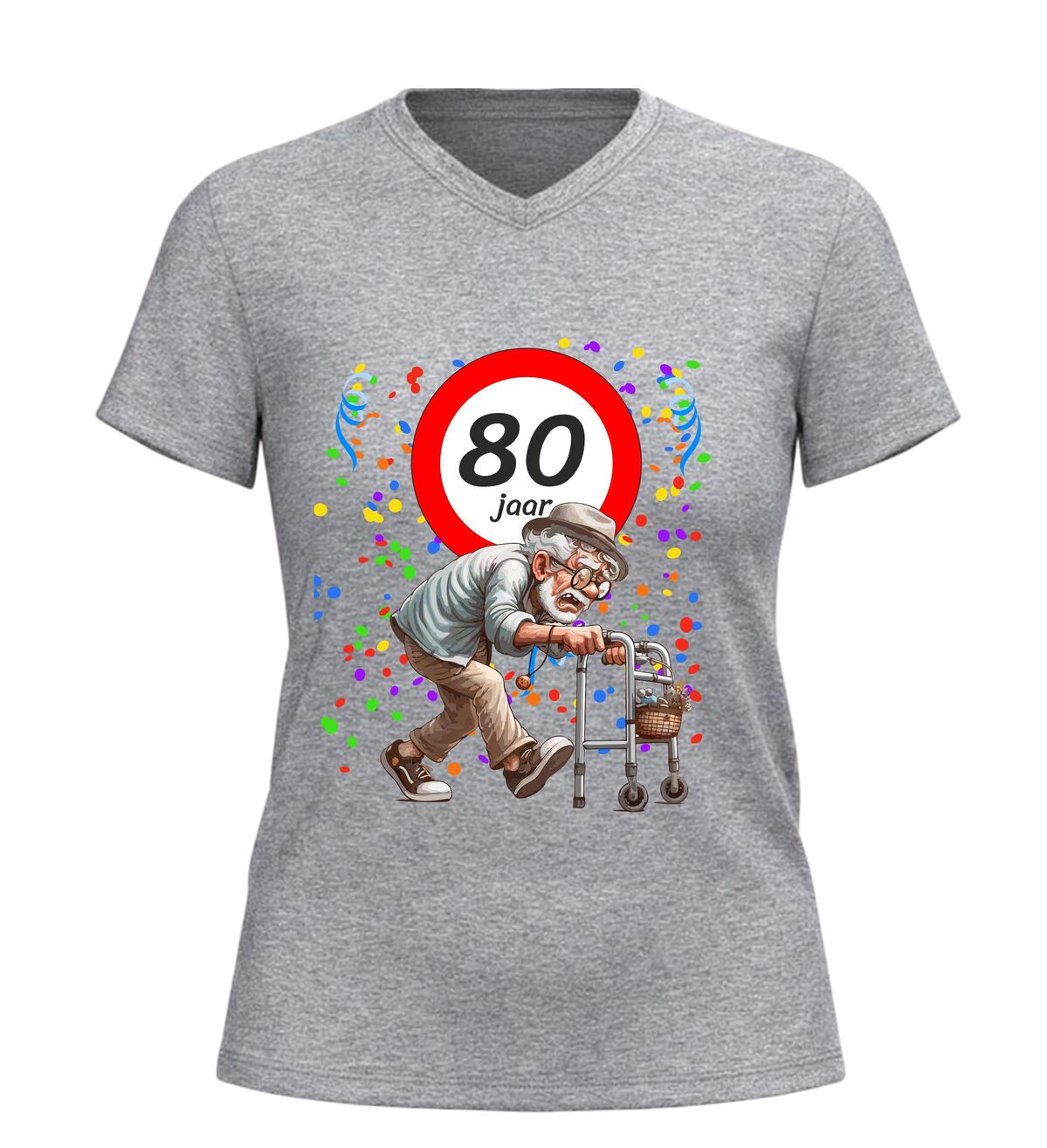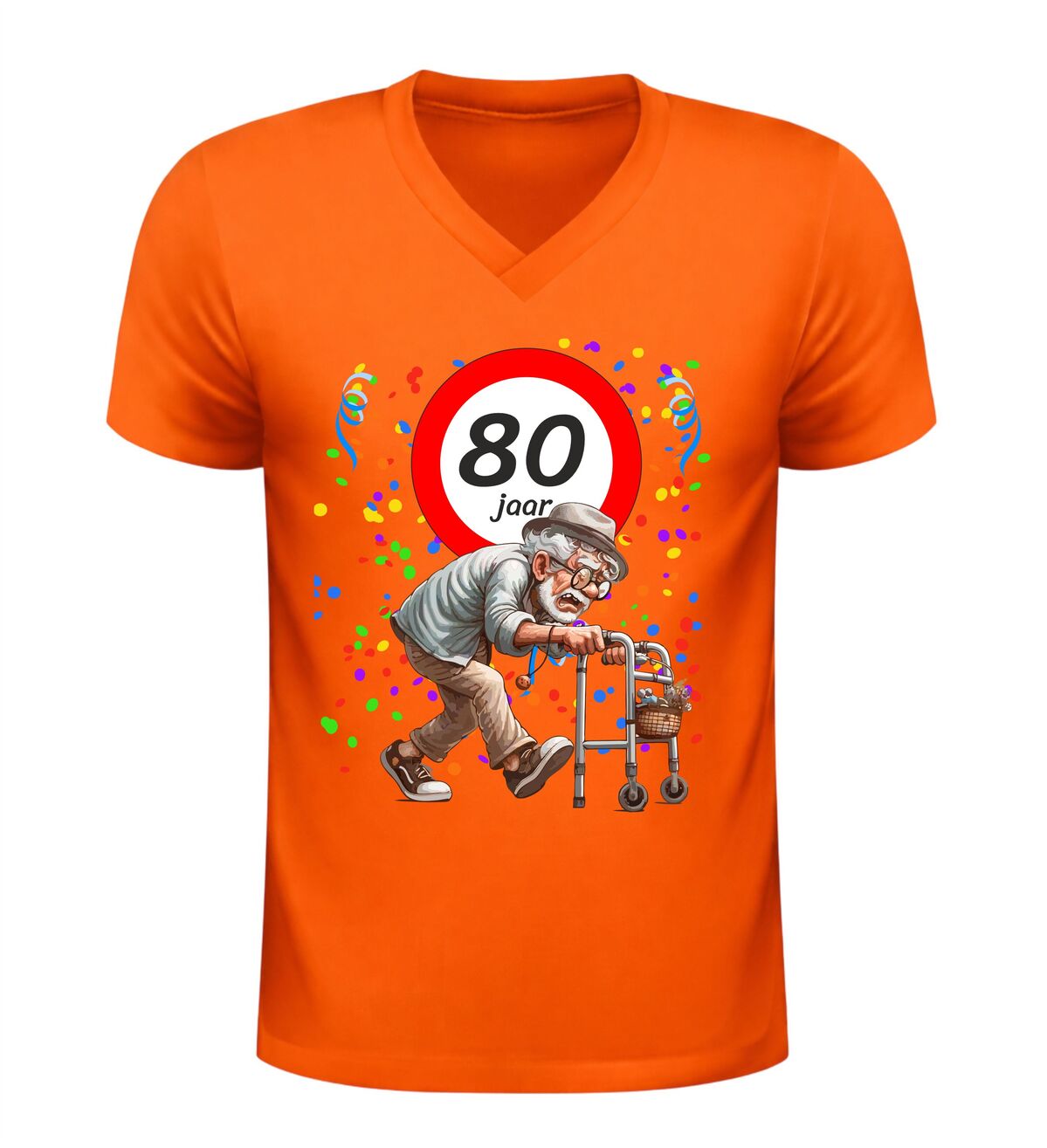 Ben je op zoek naar een origineel en grappig cadeau voor een man die 80 jaar wordt? Dan is dit 80 jaar V-hals shirt voor heren een schot in de roos. Feestelijk, luchtig en gegarandeerd goed voor lachende gezichten, plagerige opmerkingen en een verjaardag die niemand snel vergeet. Want eerlijk is eerlijk: 80 worden is een prestatie… zelfs met rollator.