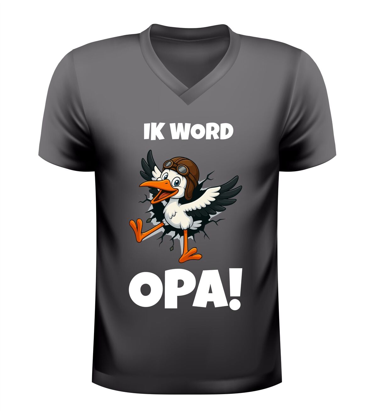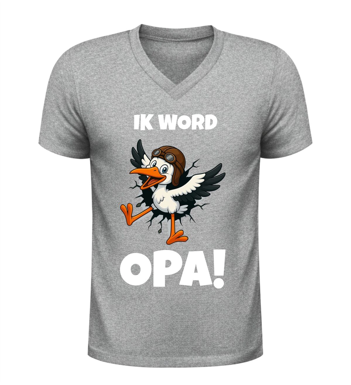 Met dit heren v-hals shirt Ik word opa met ooievaar maak je de zwangerschapsaankondiging extra speciaal. Een stijlvol, betekenisvol en feestelijk shirt waarmee elke toekomstige opa vol trots kan laten zien dat er een nieuw hoofdstuk begint.