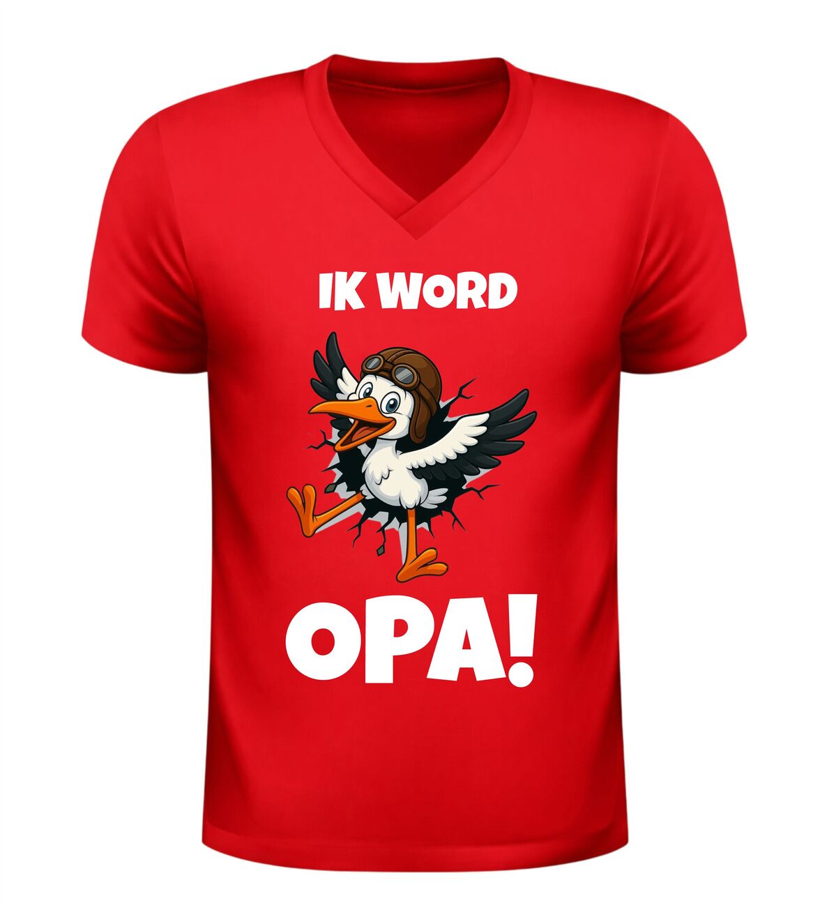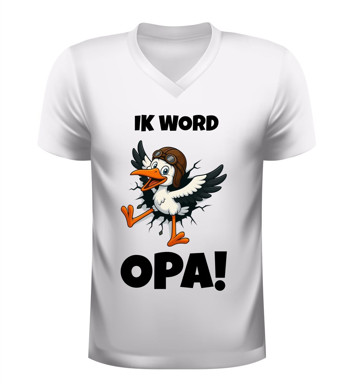 Een bijzonder moment verdient een bijzondere aankondiging. Met dit heren v-hals shirt Ik word opa wordt het grote nieuws op een originele en emotionele manier gedeeld. De klassieke ooievaar op de opdruk staat symbool voor nieuw leven en maakt dit shirt perfect om het aankomende opa-schap trots te laten zien.