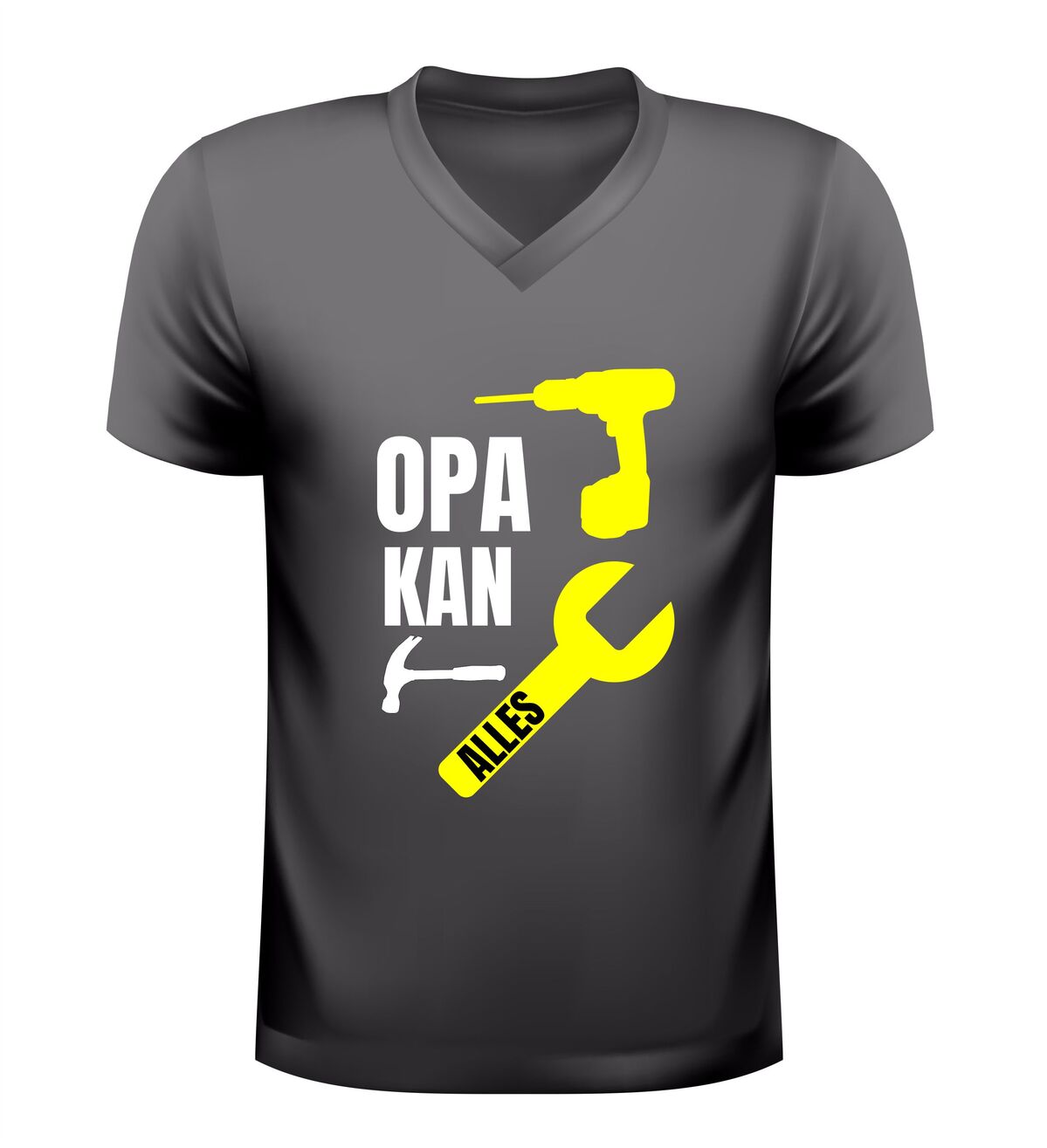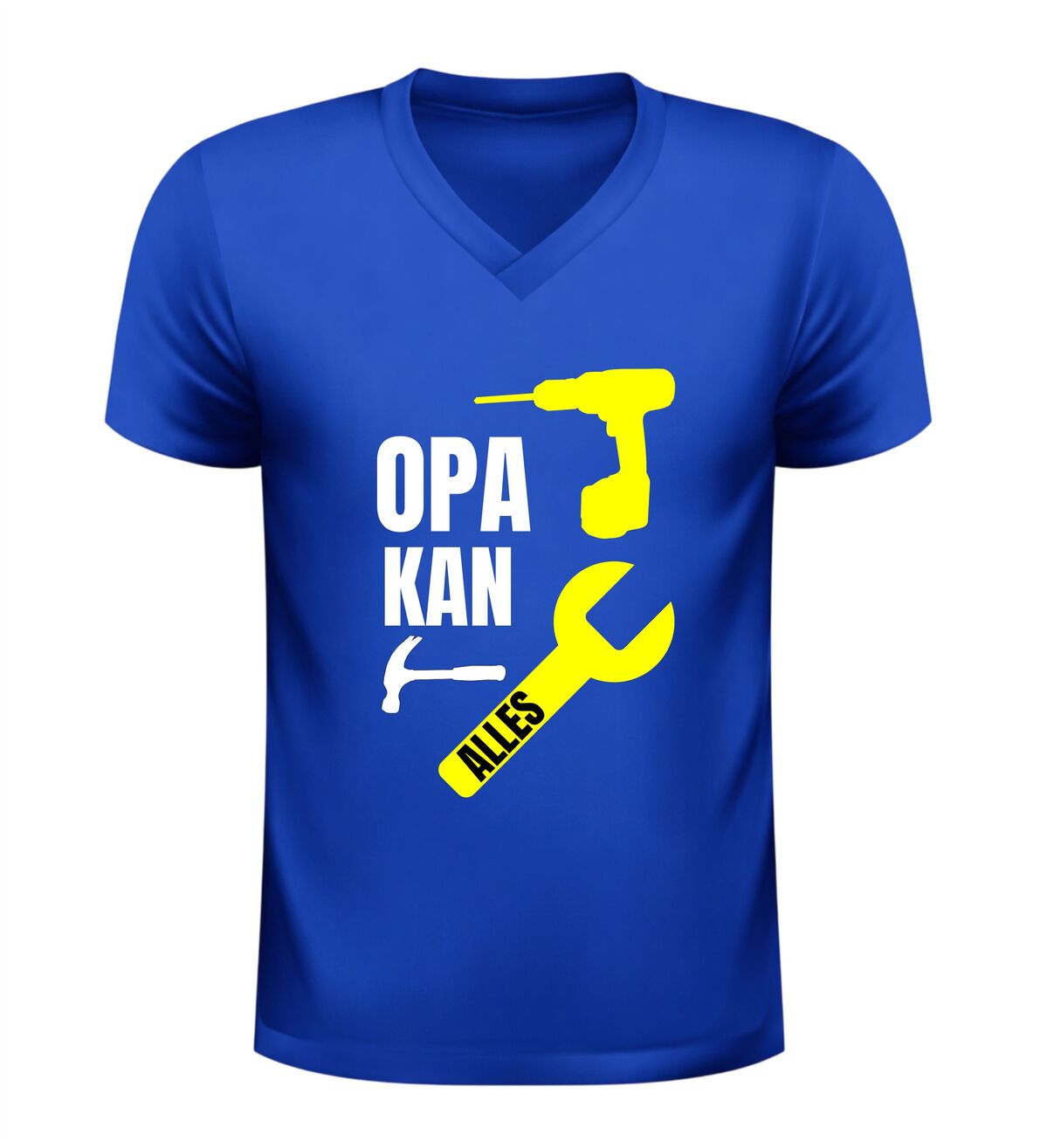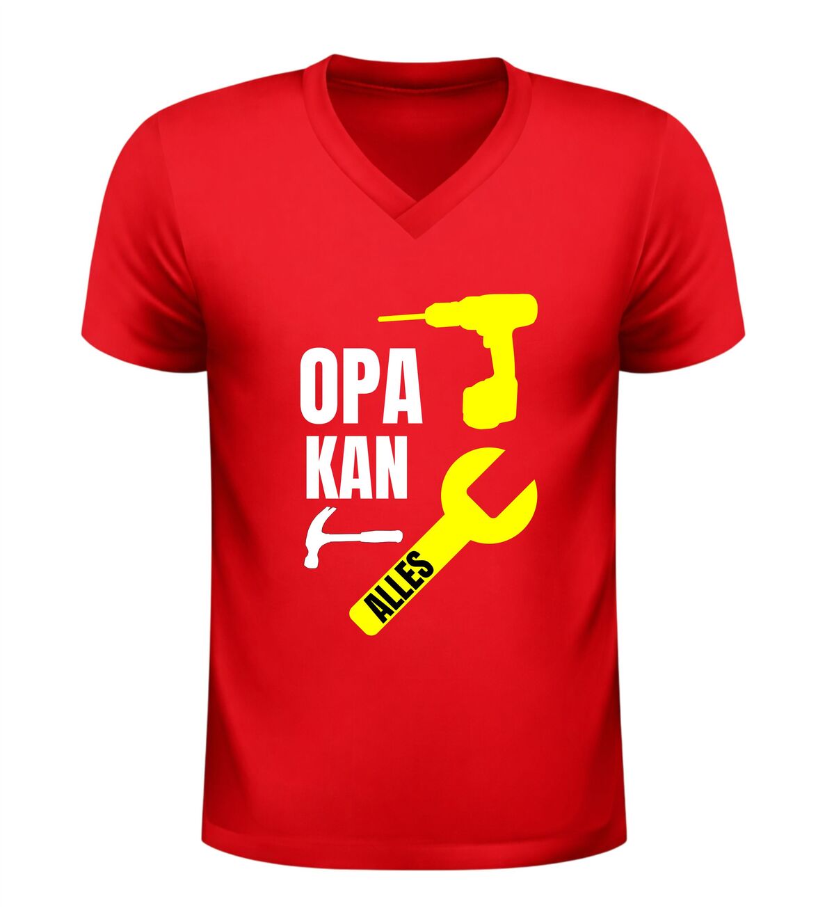 Sommige opa’s kunnen écht alles, en dat mag gezien worden. Dit heren v-hals shirt met de tekst opa kan alles is een eerbetoon aan de handige, sterke en altijd behulpzame opa. De stoere afbeelding van gereedschap onderstreept precies waar dit shirt voor staat: vakmanschap, ervaring en een flinke dosis trots.