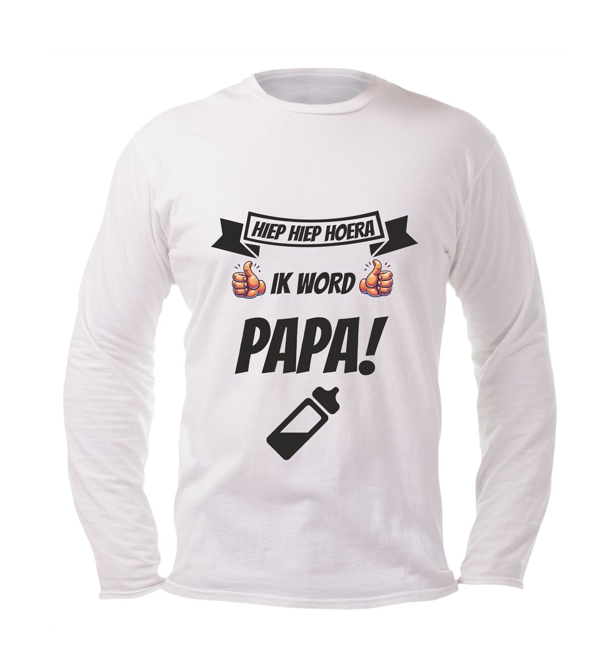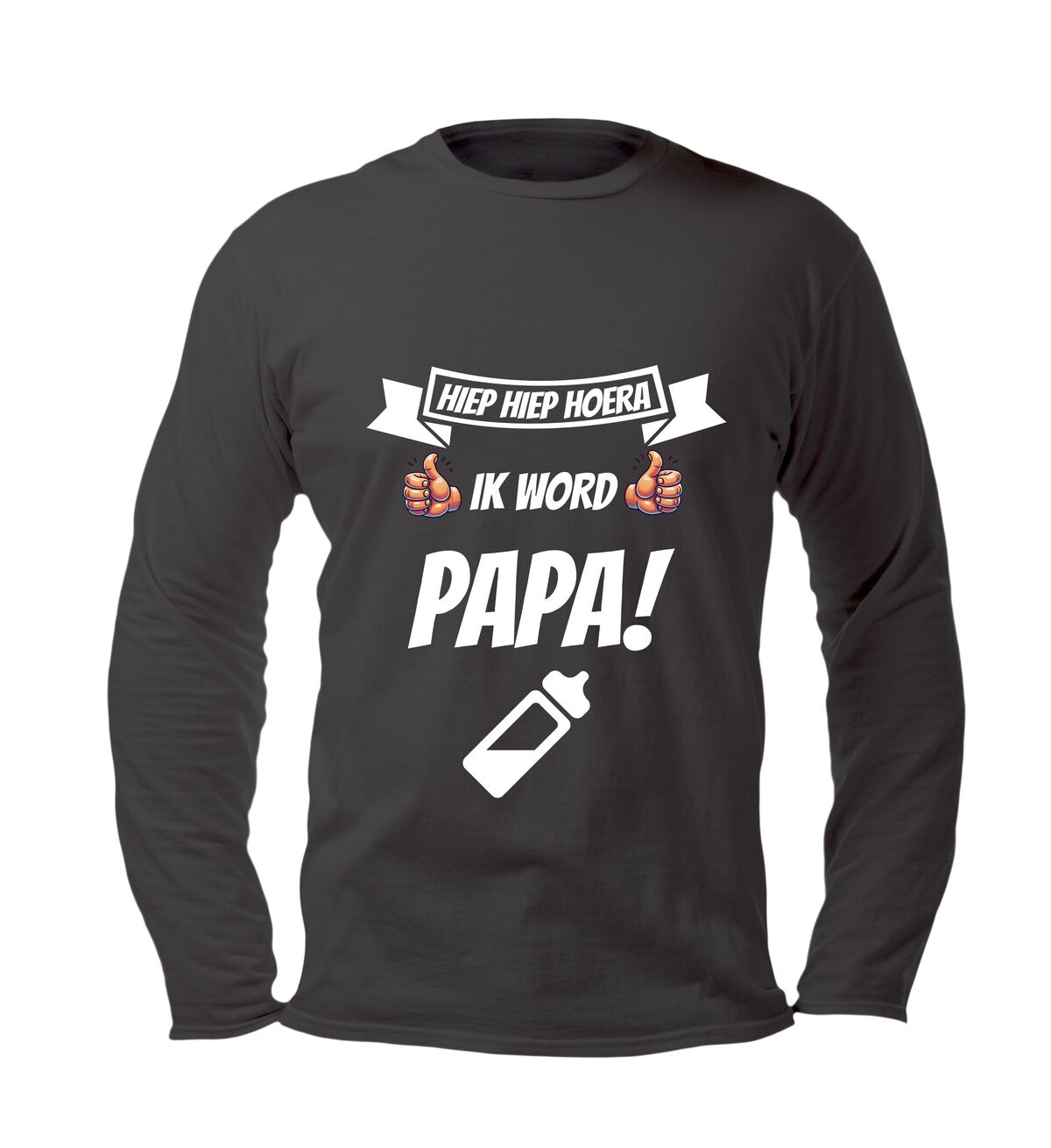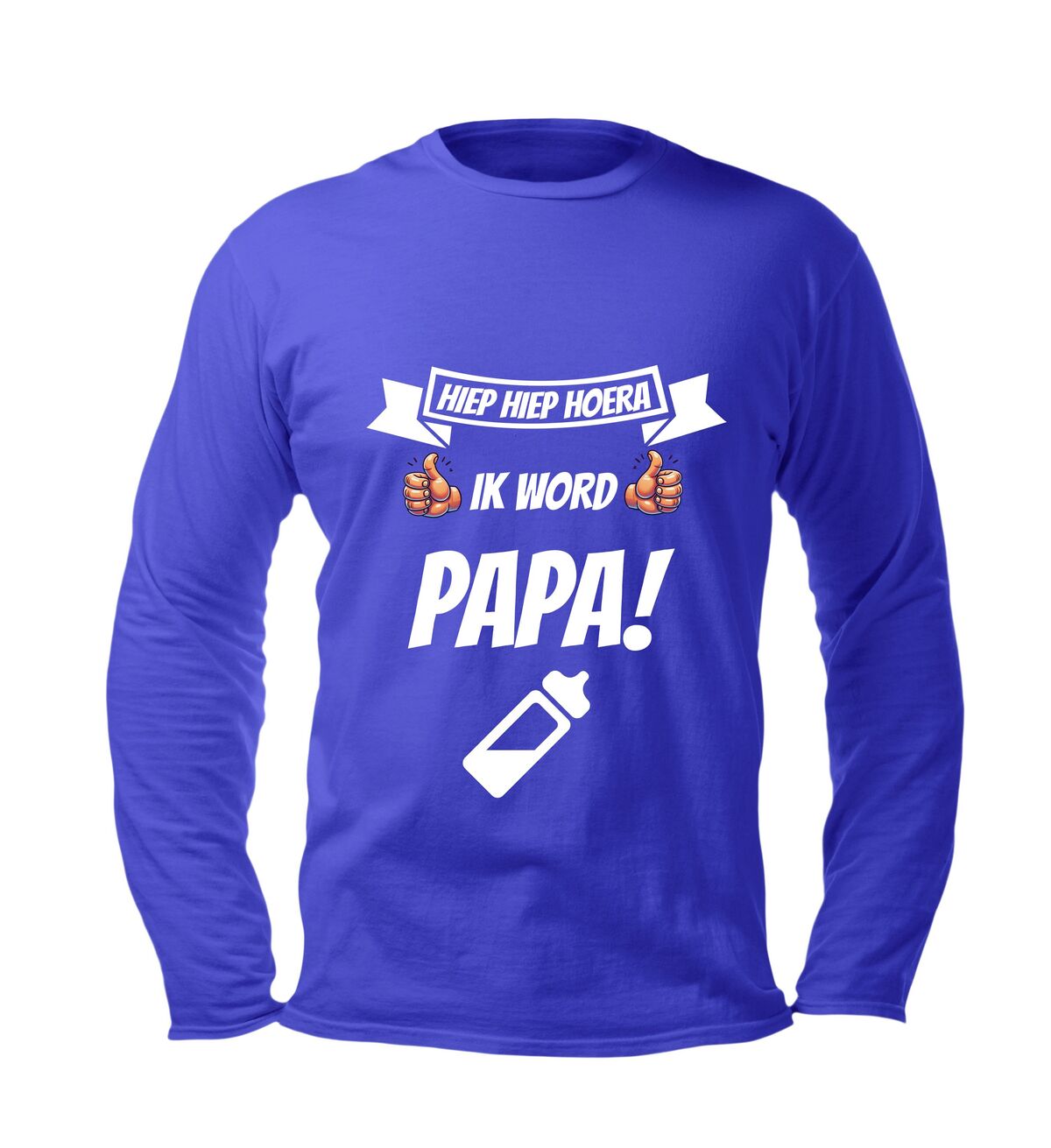 Met deze unisex longsleeve met de tekst “Hiep hiep hoera ik word papa” laat je op een speelse én trotse manier weten dat er een kleintje op komst is. Ideaal voor een zwangerschapsaankondiging, reveal-moment, fotoshoot of gewoon om vol blijdschap rond te lopen terwijl iedereen nieuwsgierig meekijkt.
