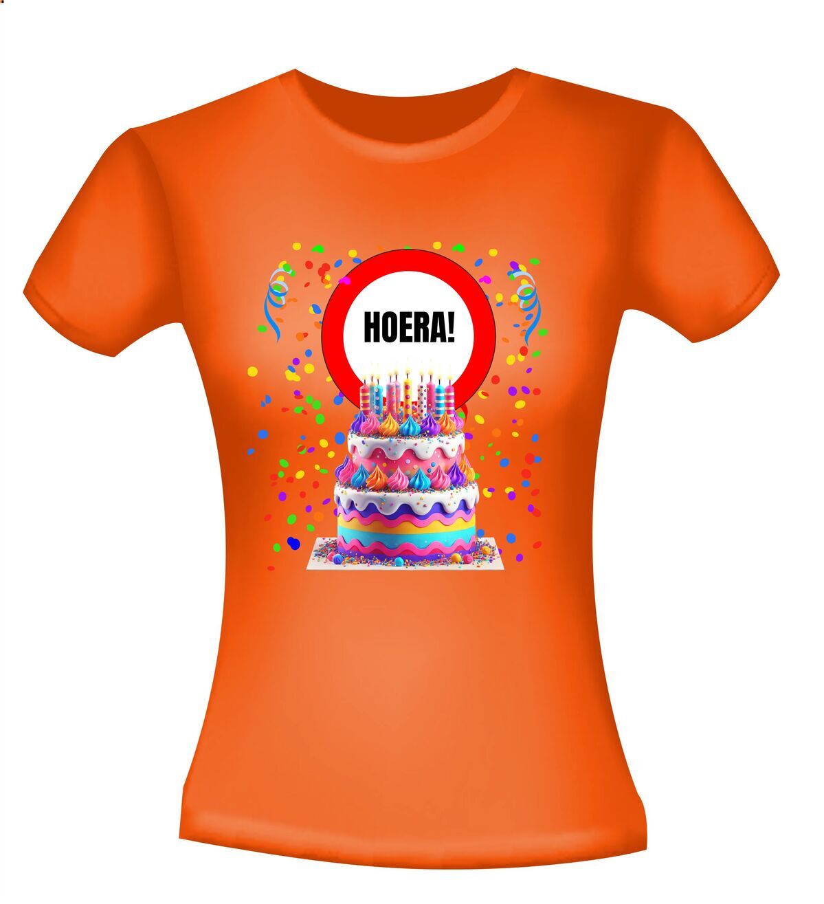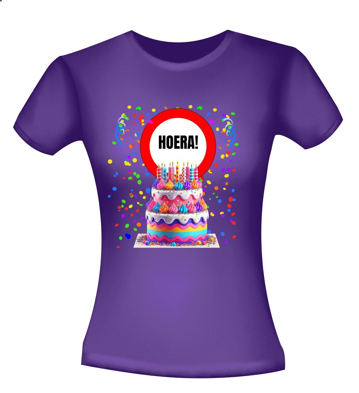 Een verjaardag is elke jaar weer een bijzonder moment om even bij stil te staan! Dus dat is zeker een feestje waard! Met dit leuk T-shirt maakt je het net even wat specialer! Dit T-shirt is voorzien van een enorme slagroomtaart met mooie versieren en kaarsjes en daaronder staat de tekst: hiep hiep hoera.