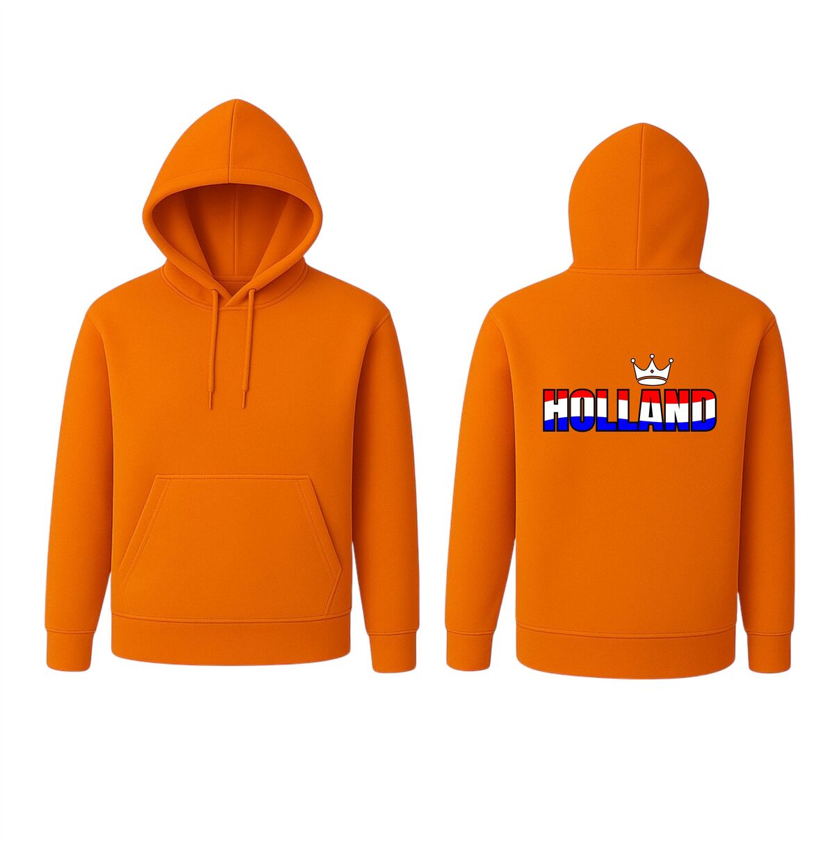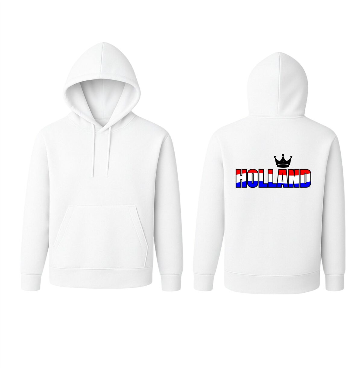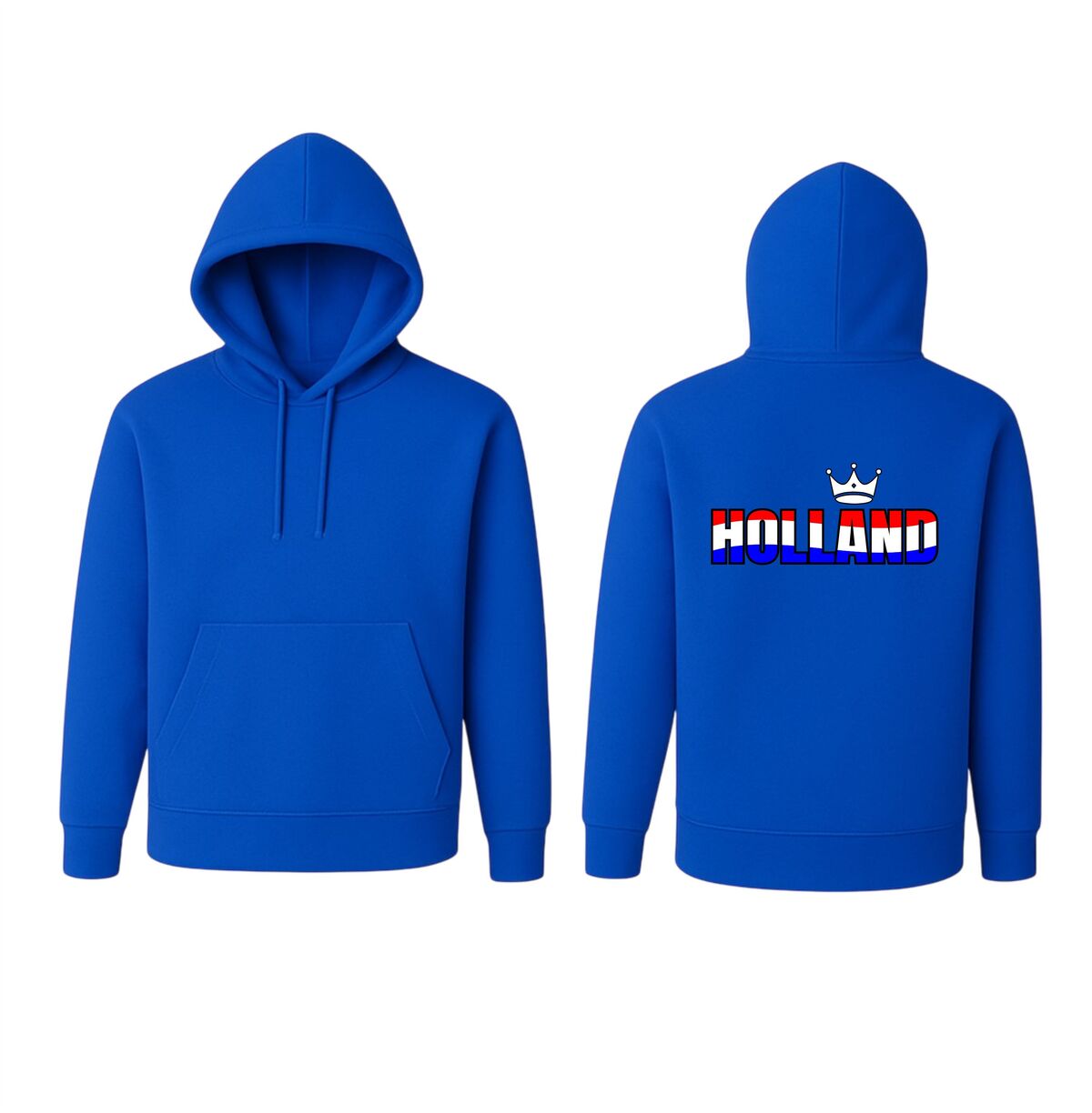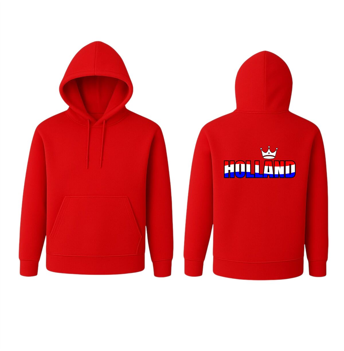 De hoodie is gemaakt van comfortabel en zacht materiaal, waardoor hij heerlijk warm is tijdens frisse avonden of buitenevenementen. De duurzame bedrukking in rood, wit en blauw blijft mooi, ook na meerdere wasbeurten. Zoek je een Holland hoodie met kroon, een rood wit blauw supporterstrui voor het EK of WK, of een originele trui voor Koningsdag? Dan is deze hoodie de perfecte keuze om jouw liefde voor Holland stijlvol en zichtbaar uit te dragen.