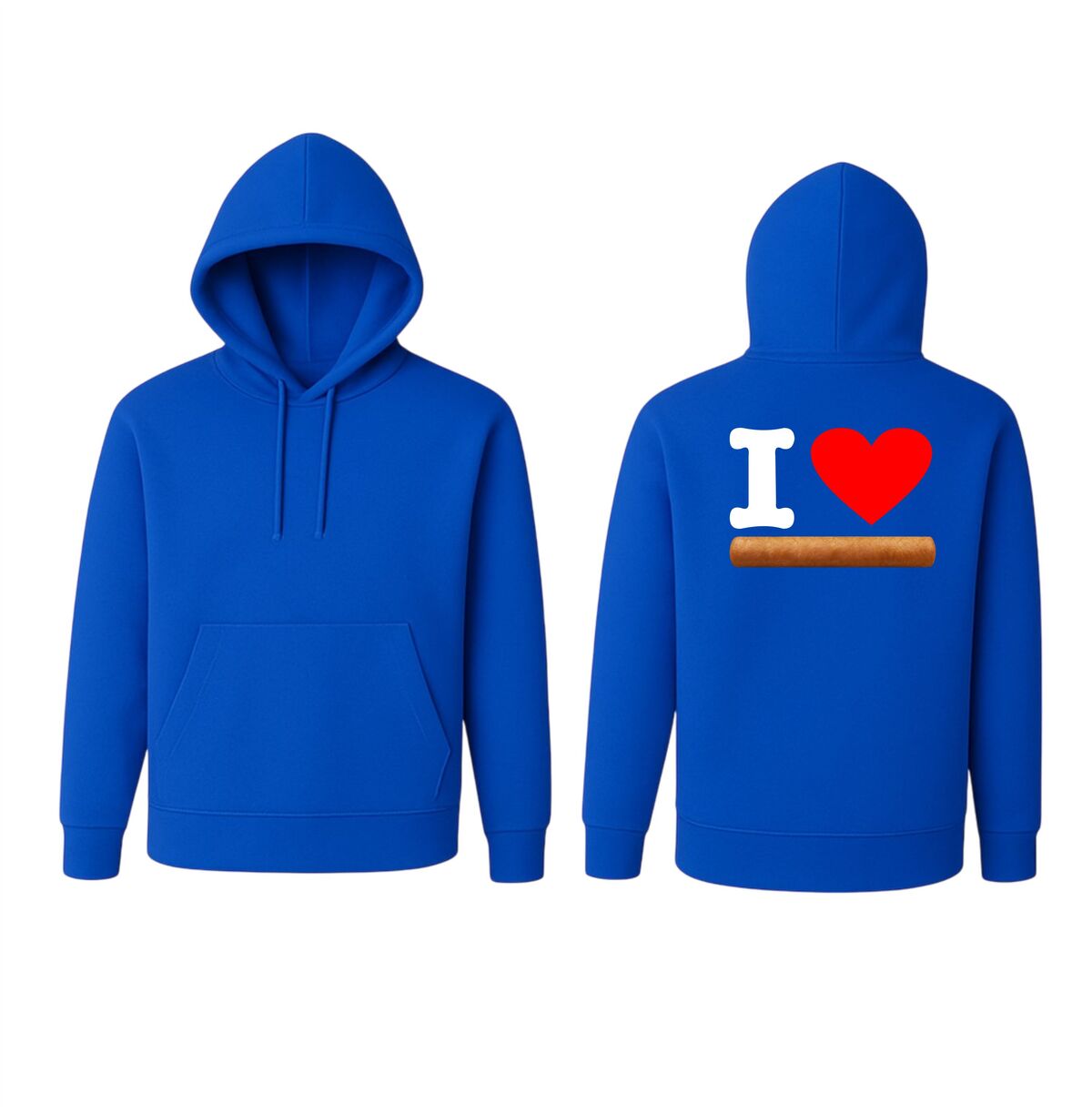 Heerlijk warme zwart Hoodie i love frikandel voor frikandel liefhebbers.