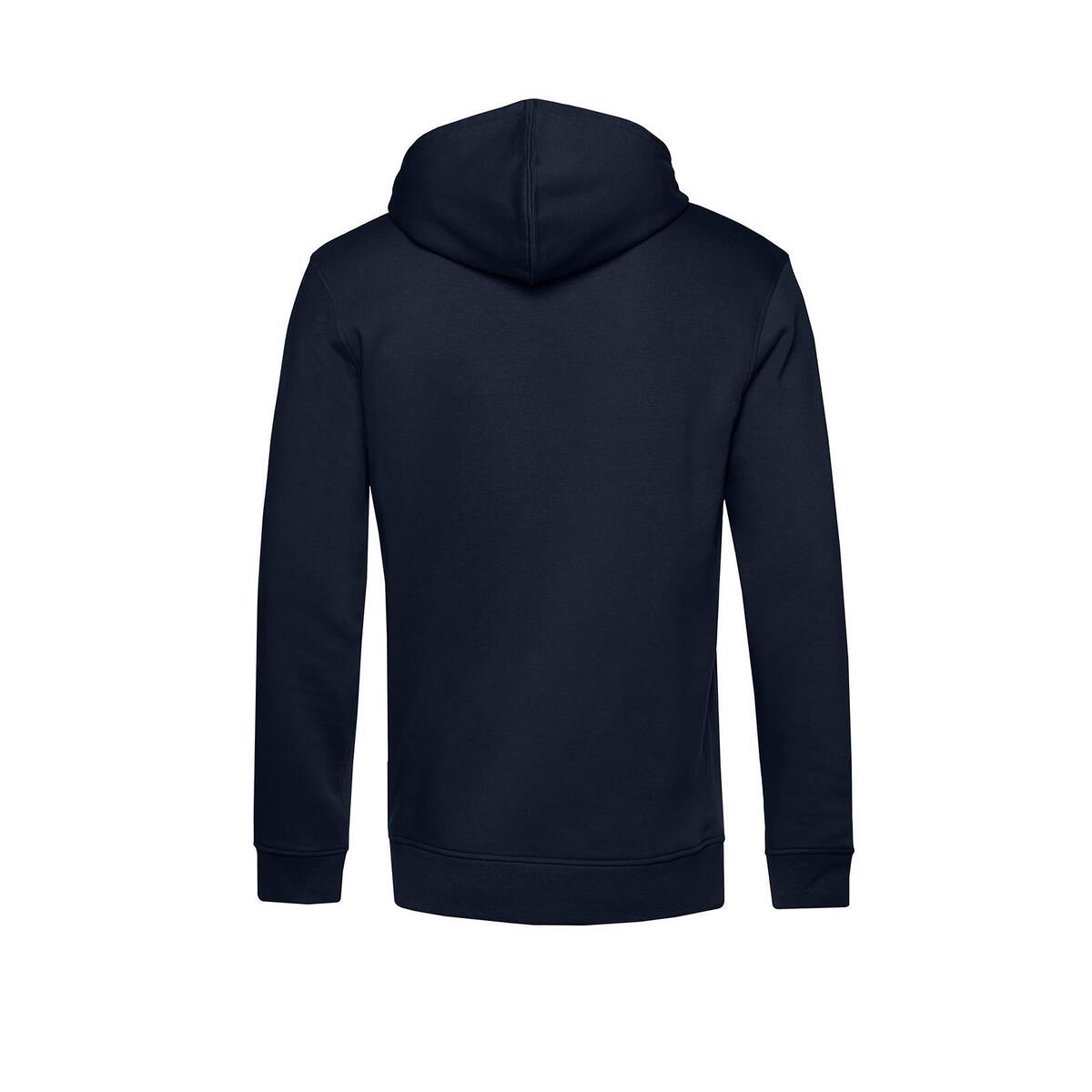 Hoodie voor heren Marine blauw *OCS en Organic-in-Conversion Cotton met RCS gecertificeerd Recycled Polyester. Milieubewuste trendy hooded met een uiterst zachte uitzonderlijke zachtheid. Opmerkeijk vlotte stijl met een perfecte pasvorm en lengte. Stevige stof die uiterst zacht aanvoelt. Materiaal:80% Ringspun Combed Organic Cotton - 20% Recycled Polyester. Dikte: 280 g/m2. Merk:B&C Inspire Hooded_°. Foto met model erop is een sfeer foto kleur buiten beschouwing houden. Land van herkomst: Bangladesh.