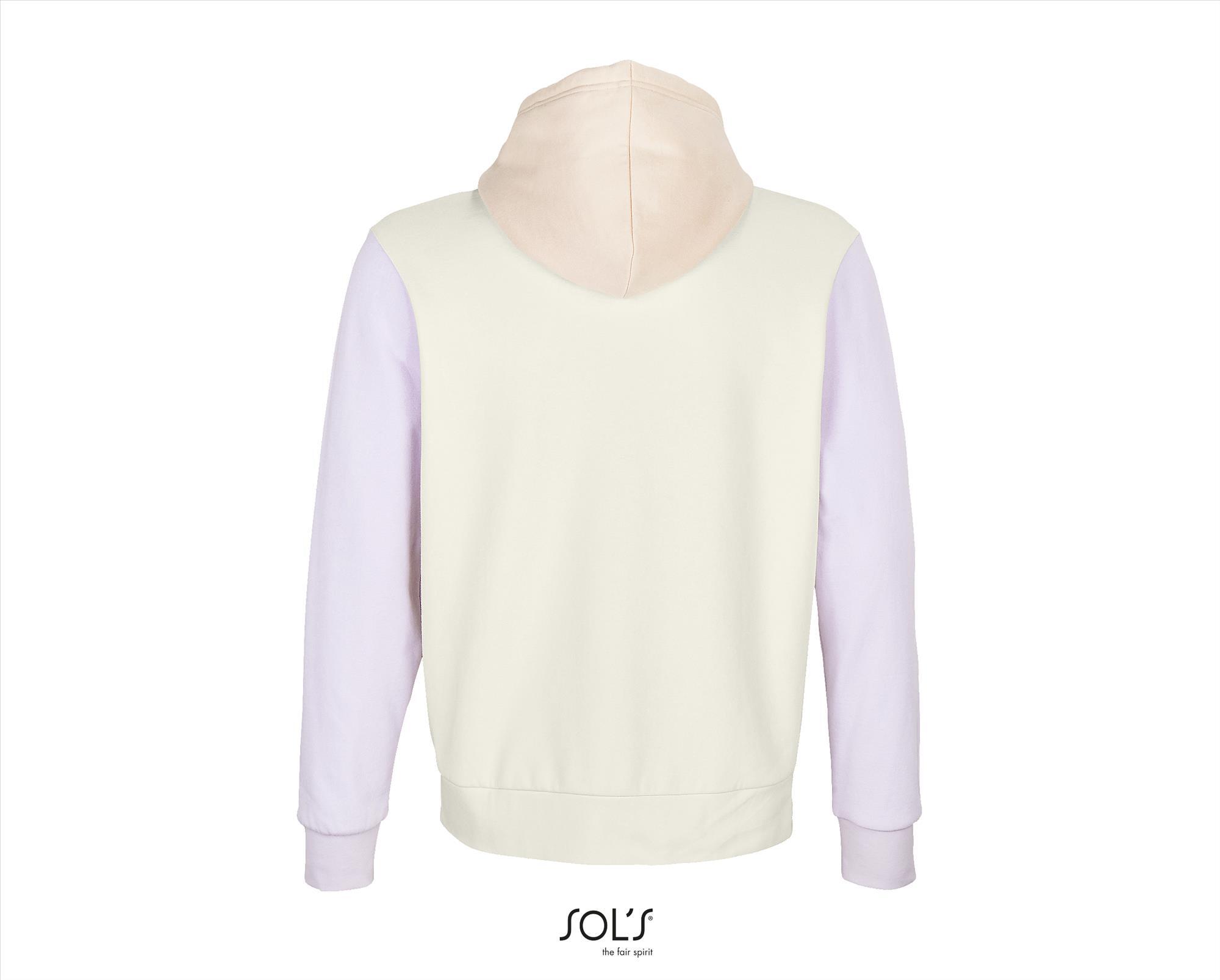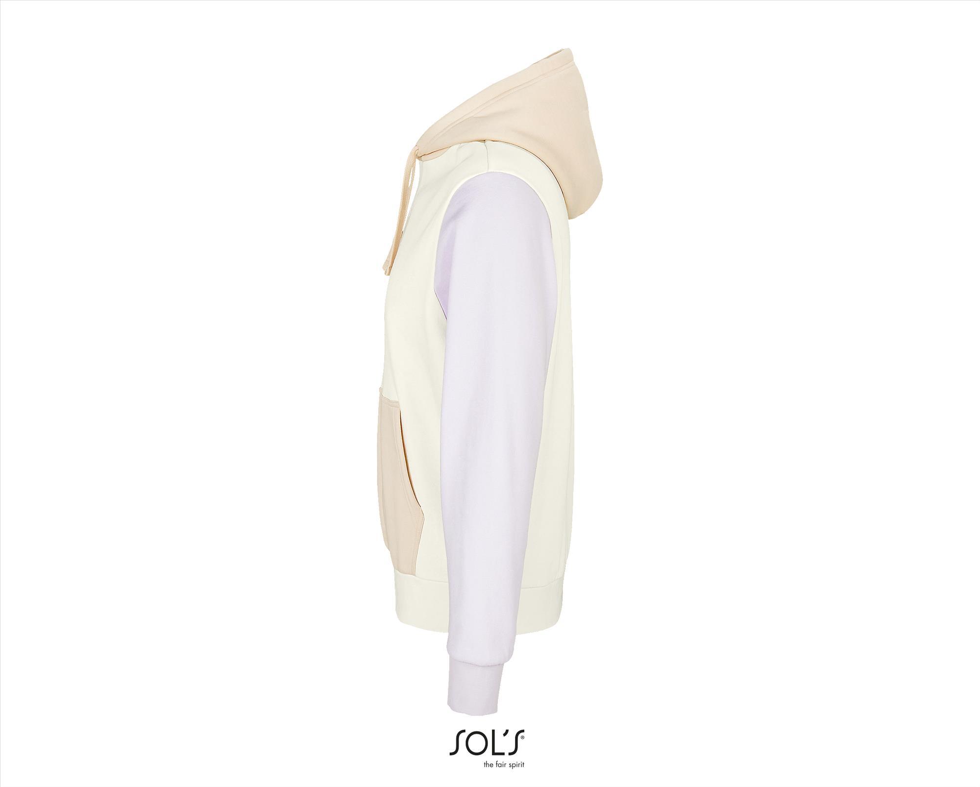 Een hooded van wit'In-conversion'katoen en gerecycled polyester in een unieke 3-kleurencombinatie! Driekleurig sweatshirt. Kangoeroezak. Gevoerde capuchon met trekkoord. 1x1 ribboorden en zoom. Halve maan binnenkraag. Boord. SOL'S Collins. Materiaal:80% Combed Organic Cotton in Conversion Recycled Poly 20%. Dikte:280 g/m2. Foto met model erop is een sfeer foto kleur buiten beschouwing houden. Land van herkomst:Bangladesh.