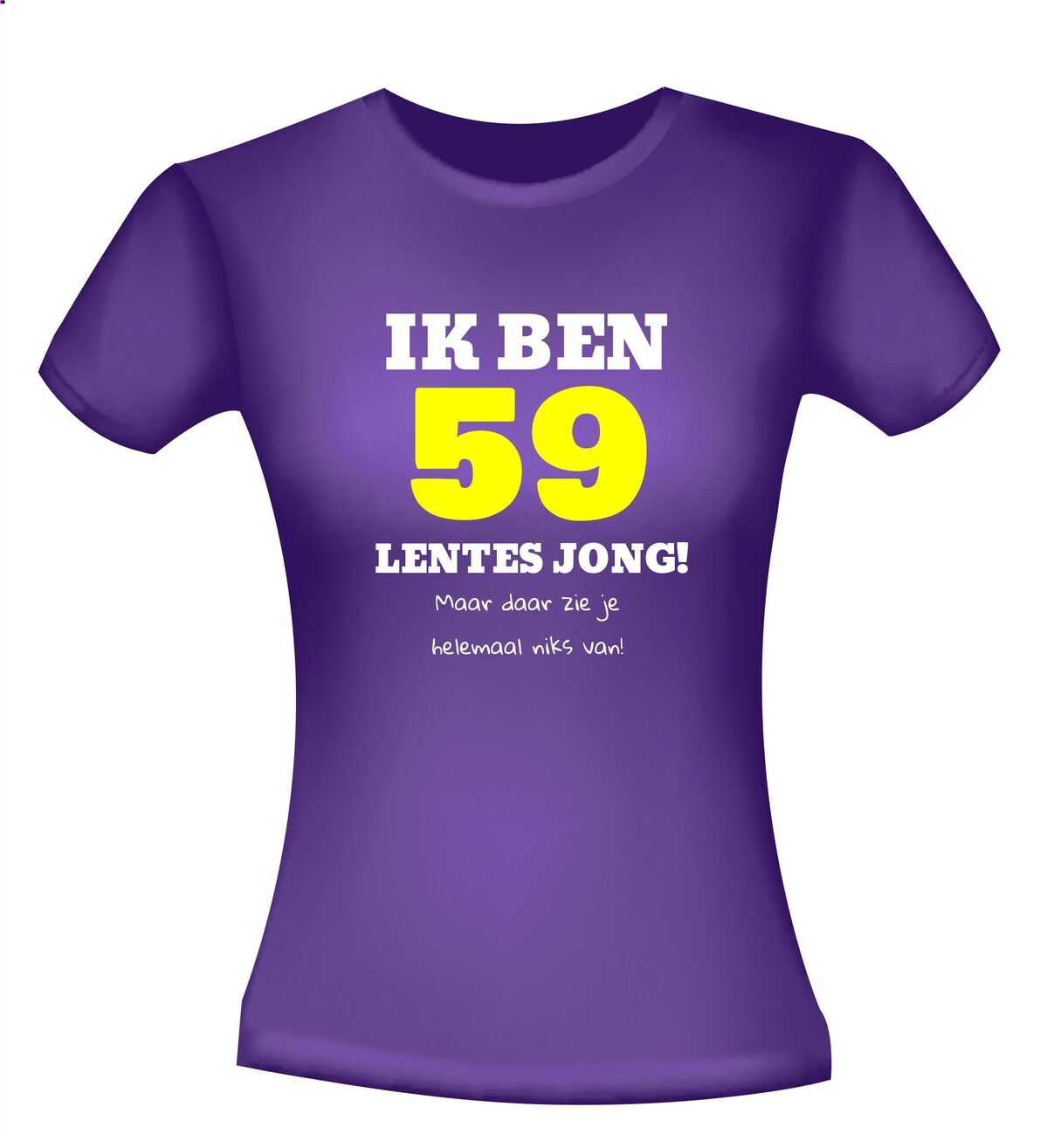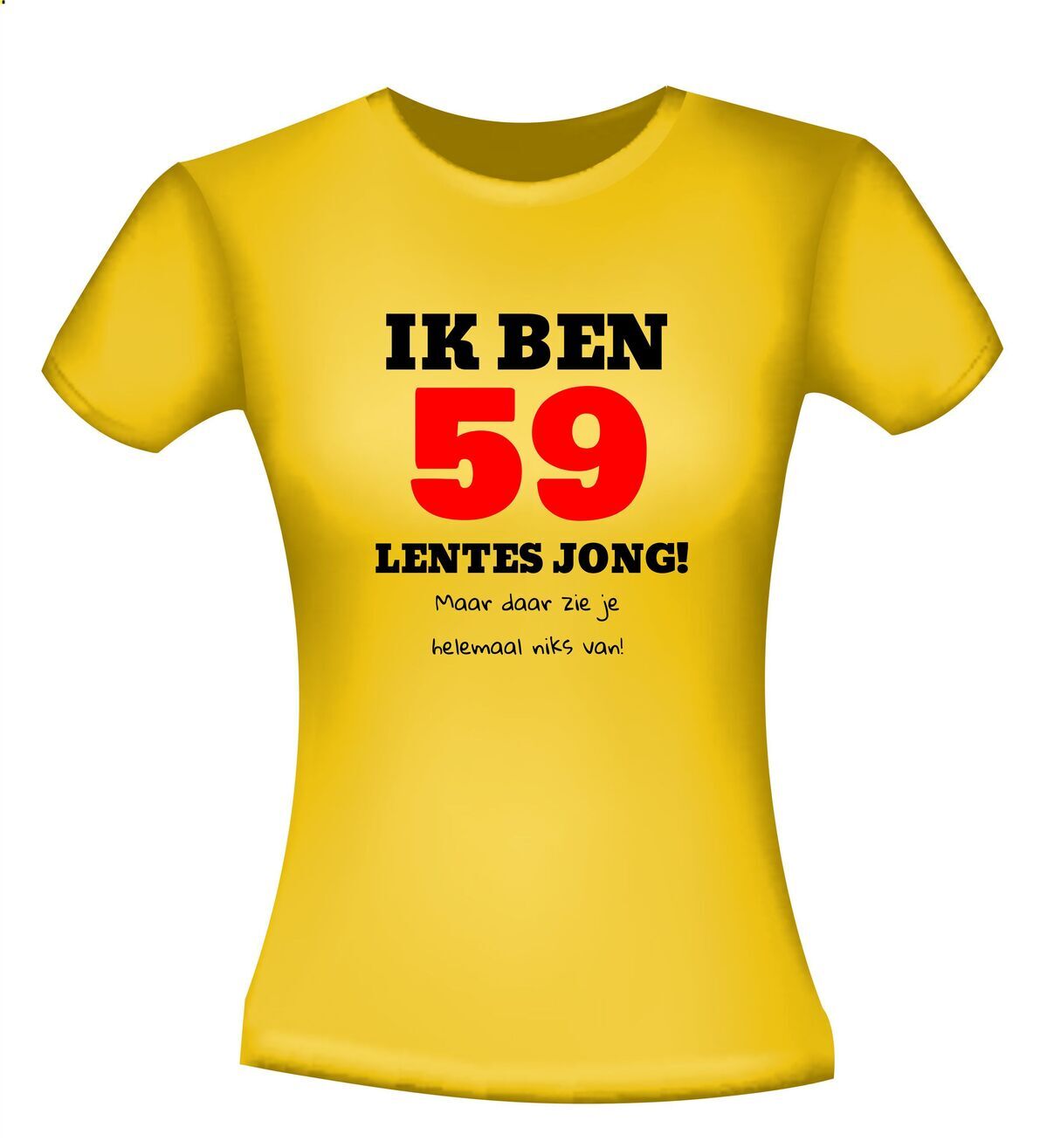 Je hebt een feestje van vriend of vriendin, collega of je echtgenote die al wat lentes meeloopt. Zo iemand heeft natuurlijk alles al en je heeft geen flauw idee wat je cadeau wilt geven. Dan is dit gekke T-shirt een echte origineel cadeau en hem of haar te complimenteren met haar 59ste verjaardag. Dit gekke T-shirt zal zeker bij de jarige in de smaak vallen.