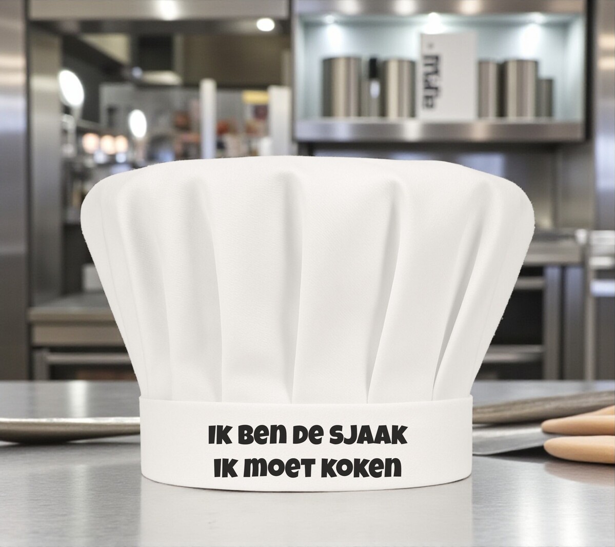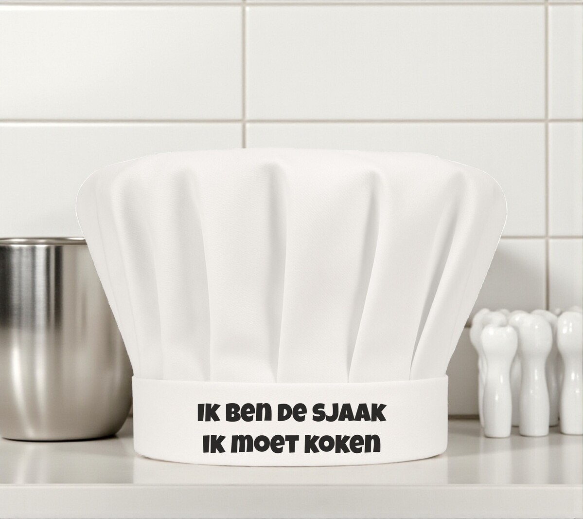 Leuke grappig koksmuts: ik ben de sjaak ik moet koken.
