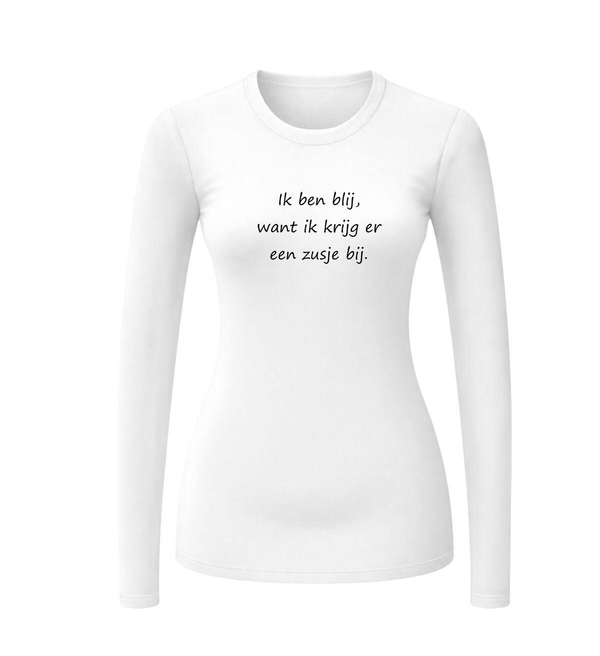 Gezinsuitbreiding ? laat iedereen het weten met dit t-shirt lange mouw: Ik ben blij want ik krijg er een zusje bij.