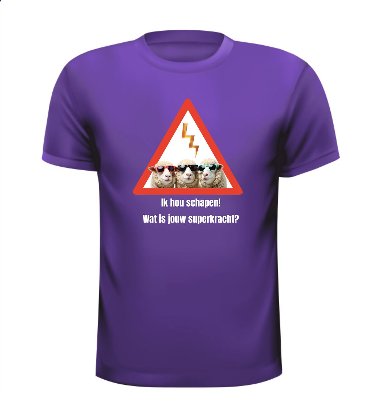 Maar ook andere teksten en afbeelding zijn mogelijk! Zit jouw kleur shirt er niet bij? Of Heb je liever een ander model bijvoorbeeld