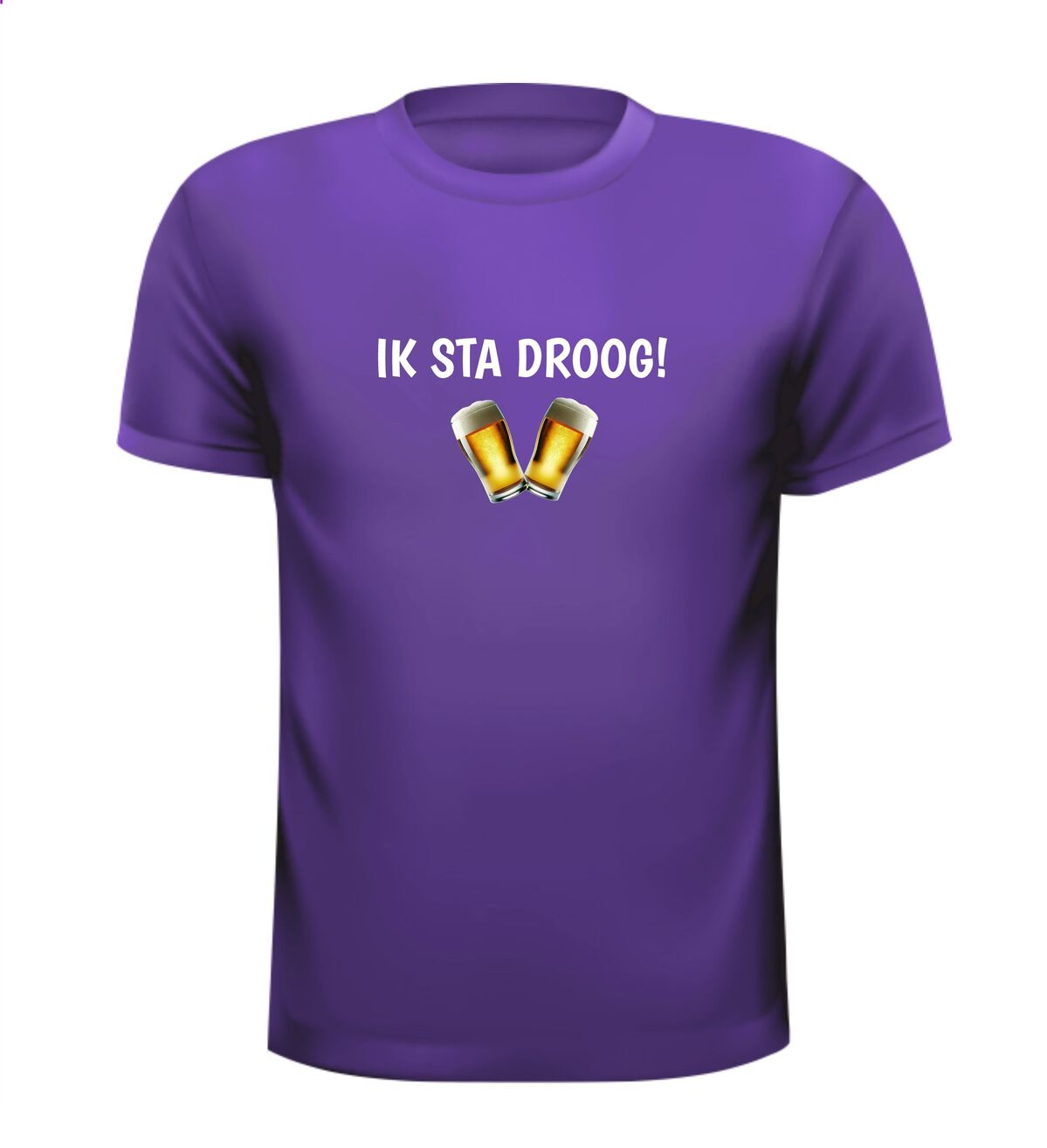 Een super leuk festival T-shirt voorzien van twee biertjes met daartussen de tekst : Ik sta droog! Maar zo te zien valt dat nog mee!