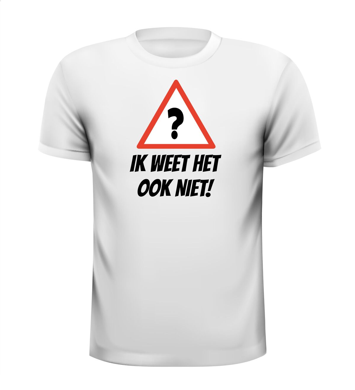 Grappig T-shirt met een leuk tekst en voorzien van een dikke vette vraagteken in een waarschuwingsbord!