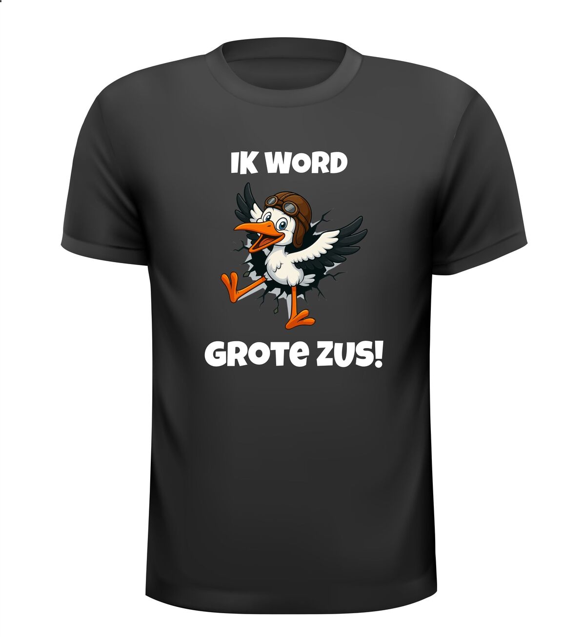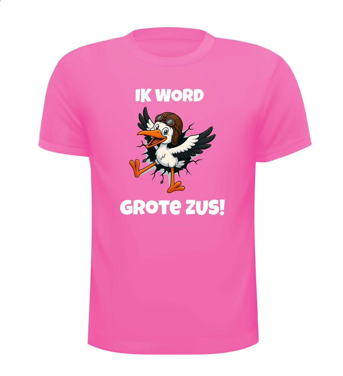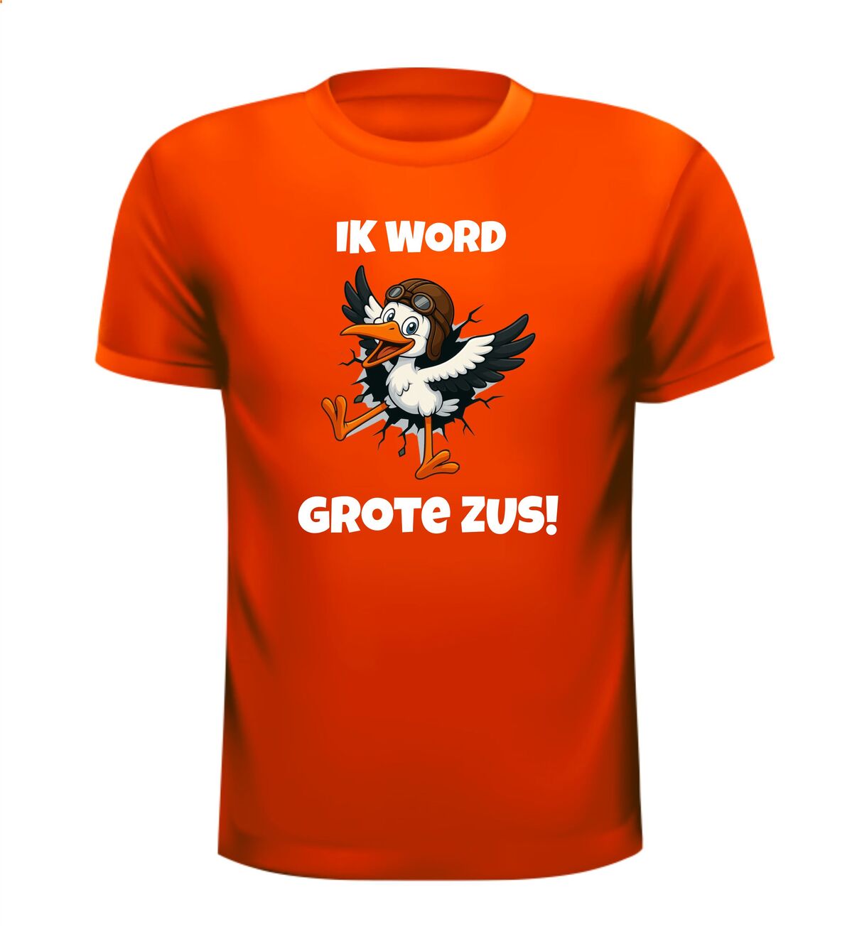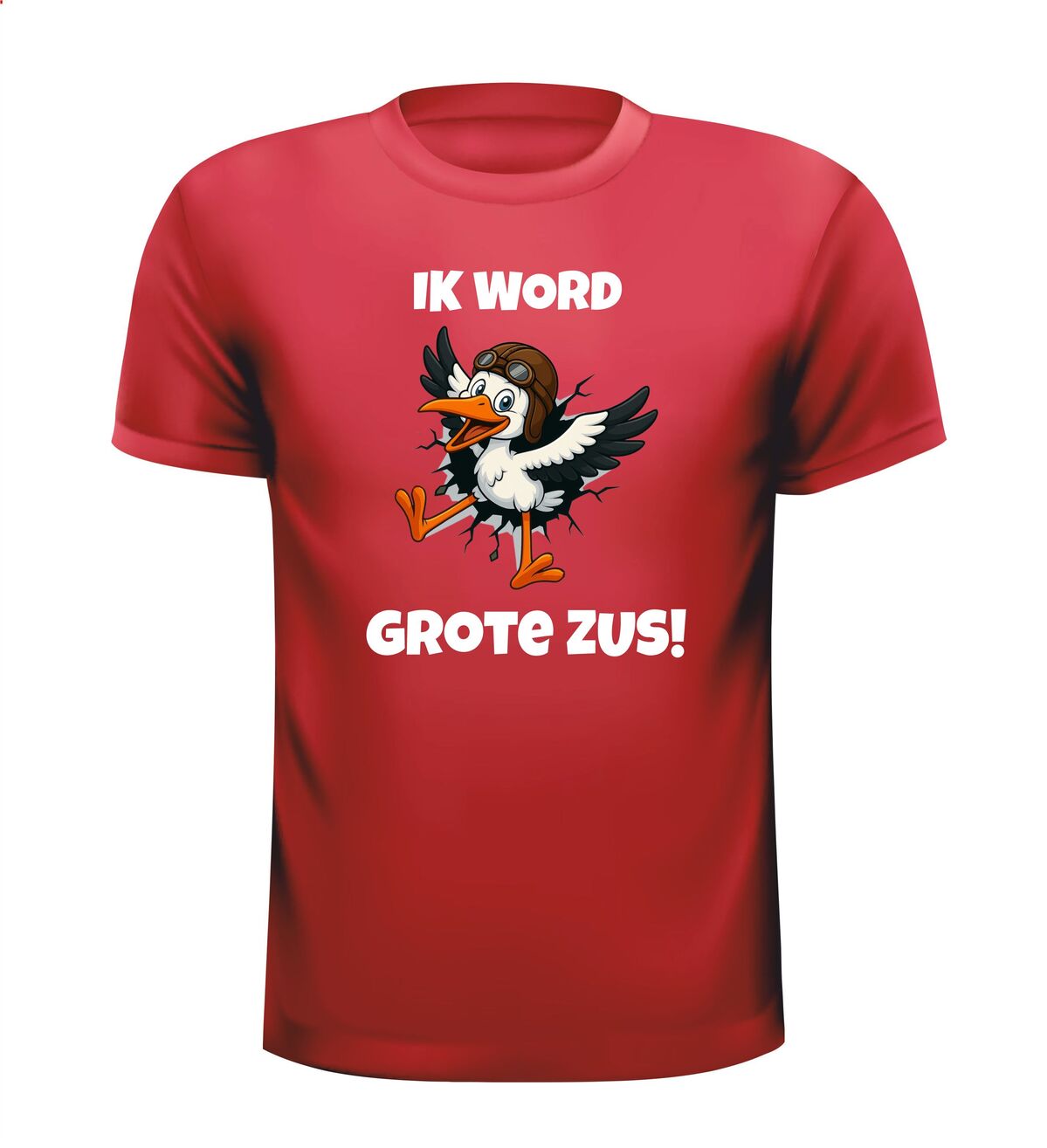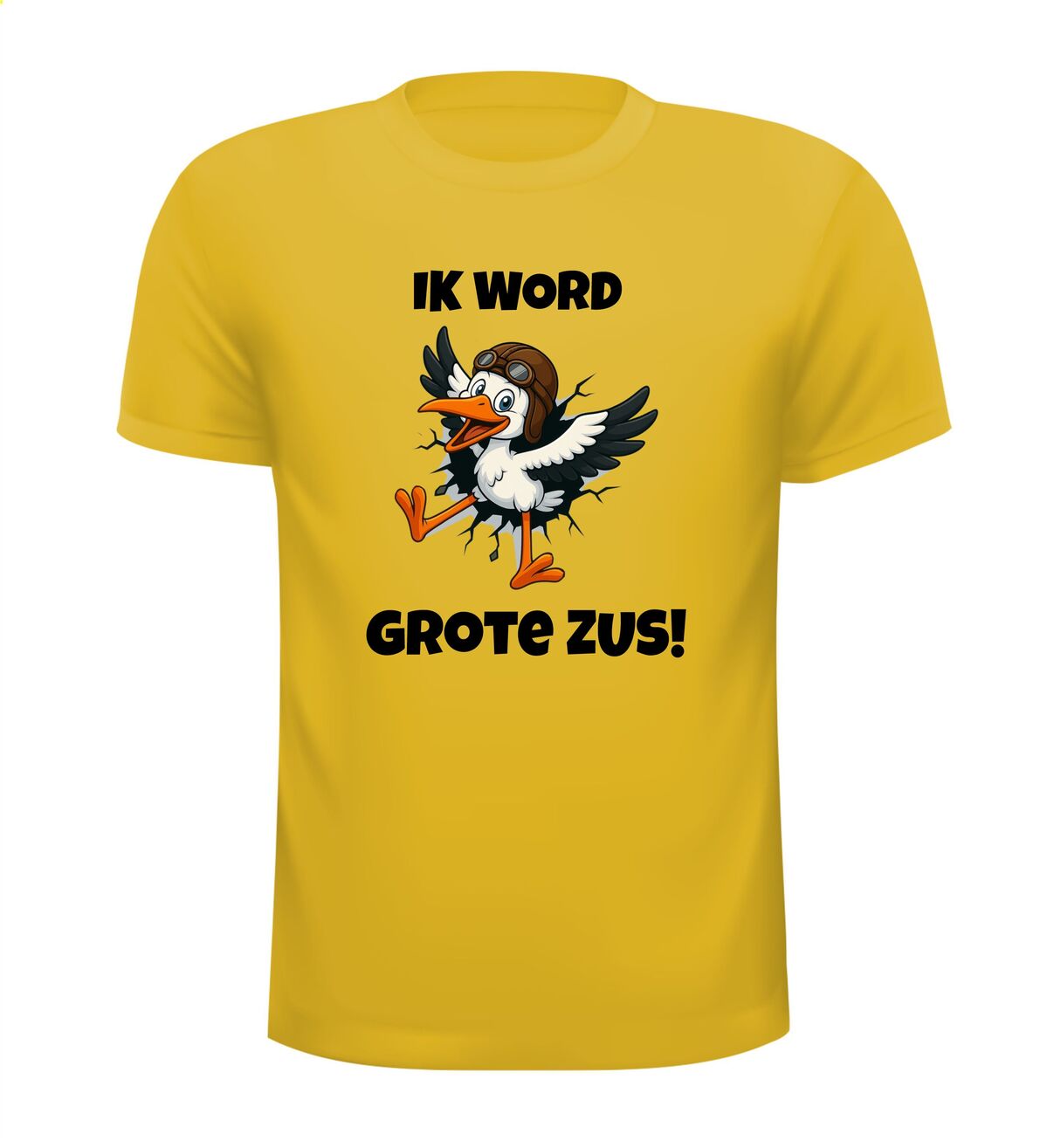 Dit T-shirt is een lieve en trotse manier om bijzonder nieuws te delen. Met de opdruk “ik word grote zus!” en een vrolijke cartoonooievaar die speels uit het shirt lijkt te kruipen, maakt dit ontwerp meteen duidelijk hoe speciaal dit moment is. Het shirt is comfortabel om te dragen en perfect om de aankondiging extra feestelijk te maken. Een mooie manier voor een aanstaande grote zus om dit bijzondere nieuws te laten zien.