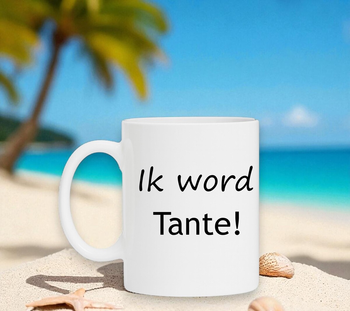 Leuk koffiemok voor aan te kondigen dat je zwanger bent aan je zus of schoonzus, en te vertellen dat ze tante wordt.