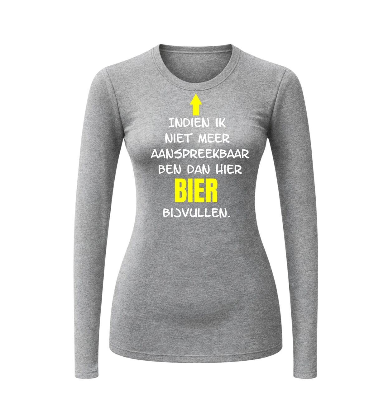 Indien ik niet meer aanspreekbaar ben dan hier bier bijvullen t-shirt lange mouw