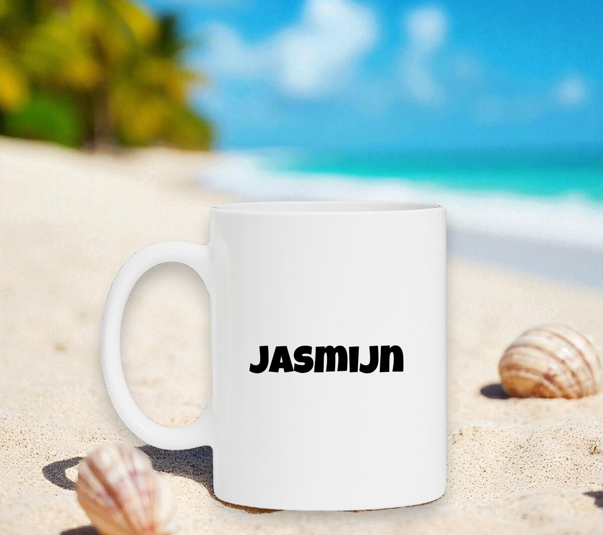 Het is mogelijk om dit artikel volledig uniek en persoonlijk te maken! Je kan volledig creatief aan de slag gaan en alles naar jouw smaak maken. Of je nu van een strakke simplistische designs houdt, gekke kleuren of van drukke prints, het is allemaal aan jou. Natuurlijk ook leuk om online te ontwerpen en weg te geven als cadeau. Of voor groepsactiviteiten waar je als één groep een eenheid wilt uitstralen. Met onze simpele ontwerptool en uitstekende service heb jij je unieke produkt snel in huis. personaliseer Jasmijn naam op mok Gepersonaliseerde mok beker met je eigen naam Gepersonaliseerd zijn de leukste cadeaus om te krijgen!