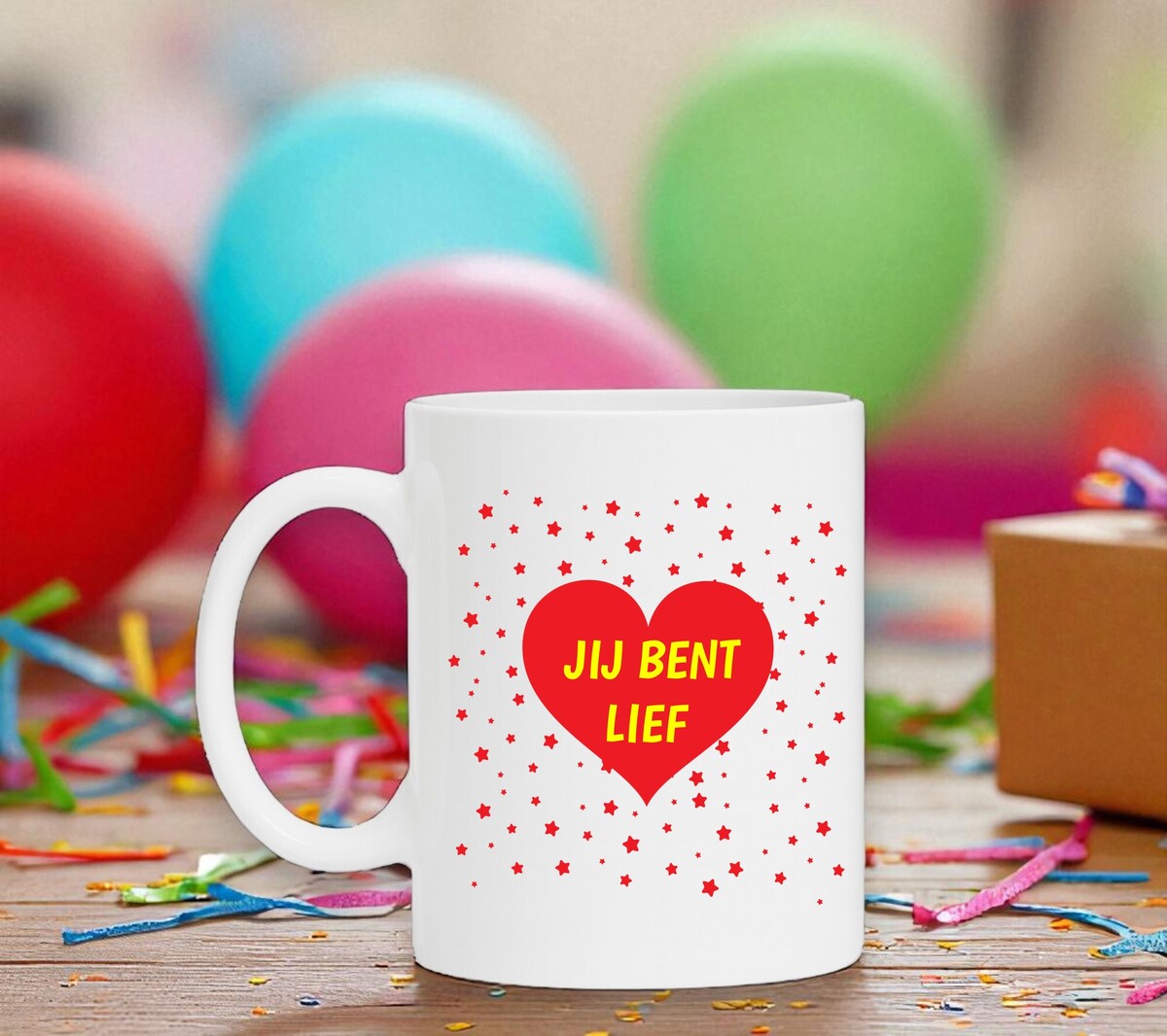 Koffiemok met een lieve tekst 'Jij bent lief'