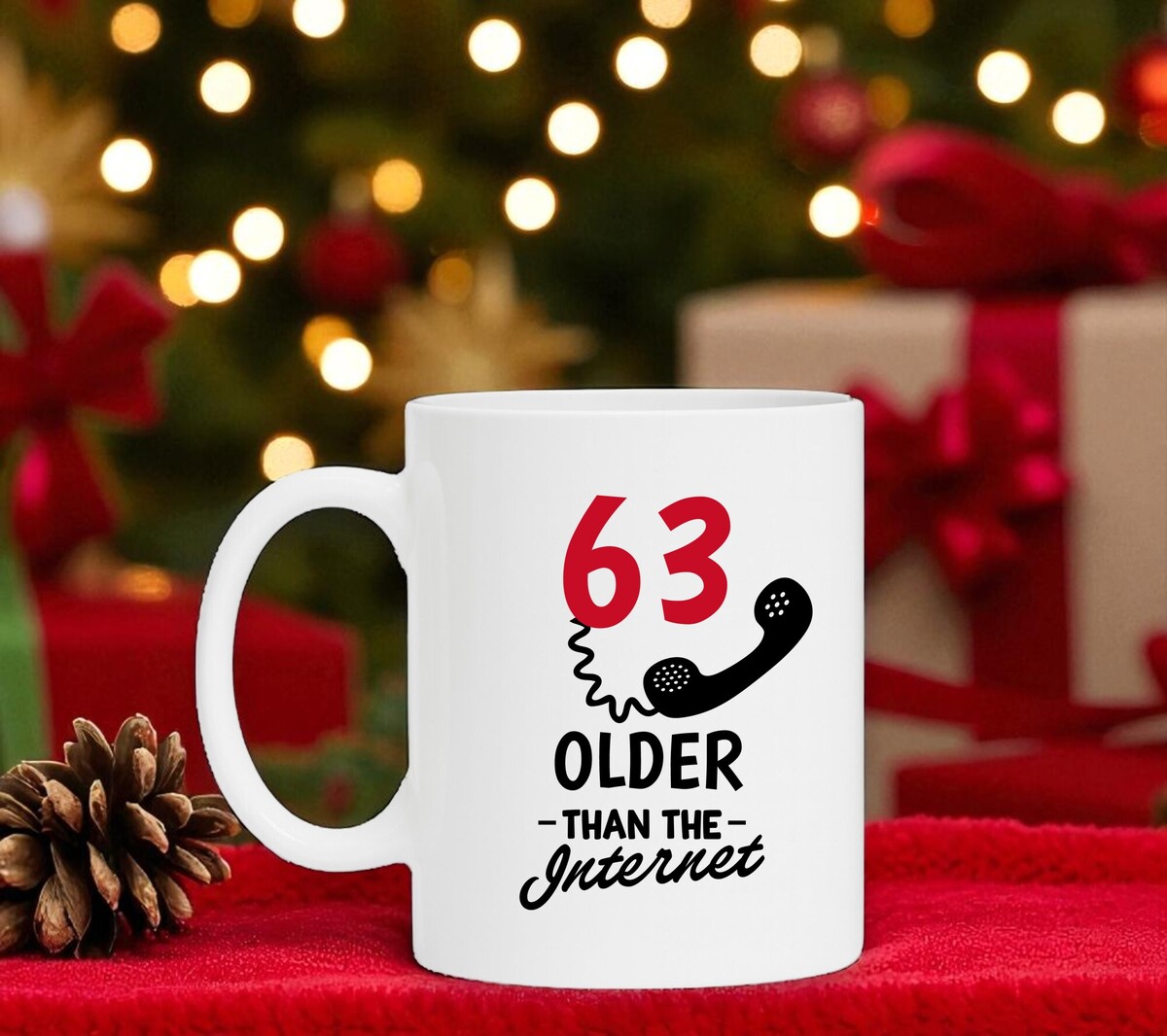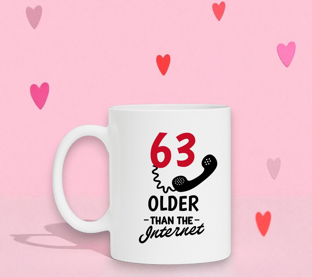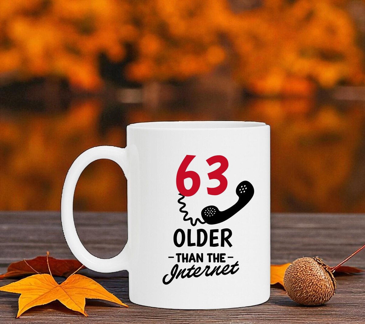 Prachtige koffie of thee mok voor hem of haar die 63 jaar wordt en ouder dan het internet is!