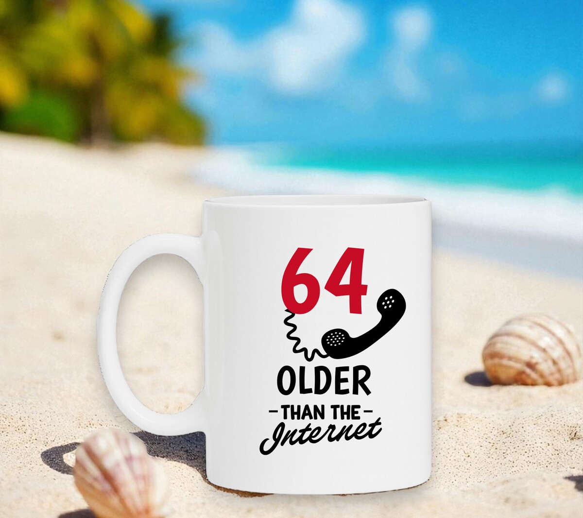 Prachtige witte koffie of thee mok voor hem of haar die 64 jaar wordt! 64 older tha the internet!