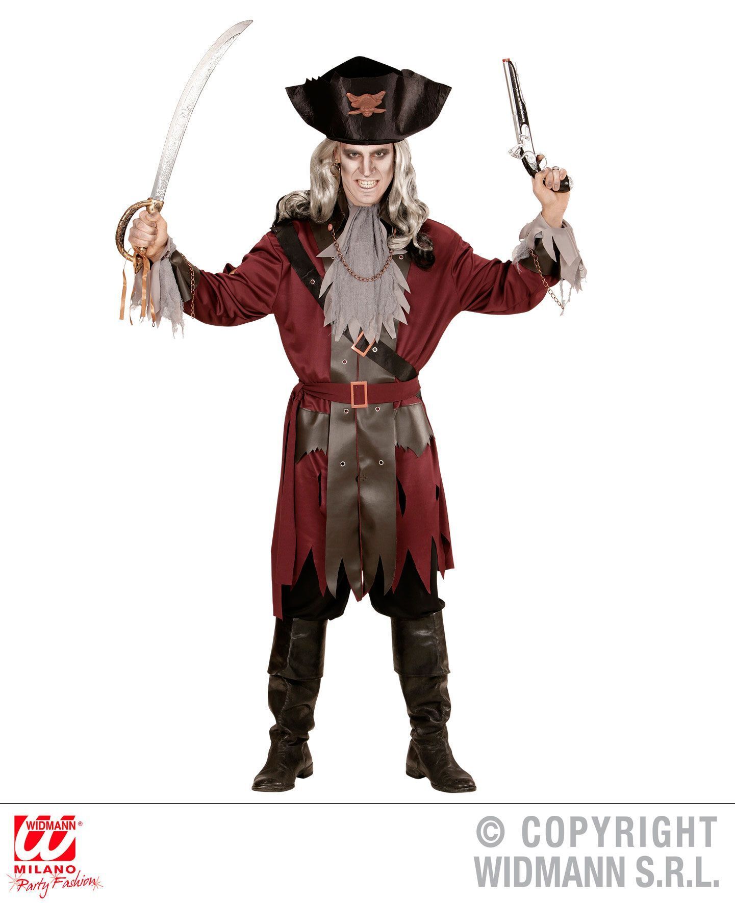 kapitein spook piraten kostuum heren, bestaande uit : Jas met riem, jabot, ceintuur en hoed