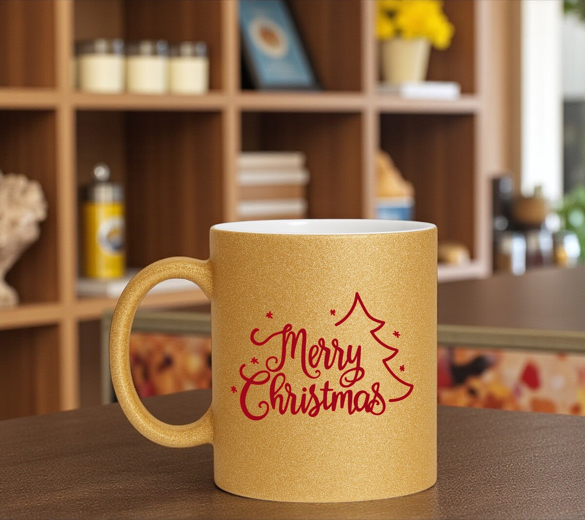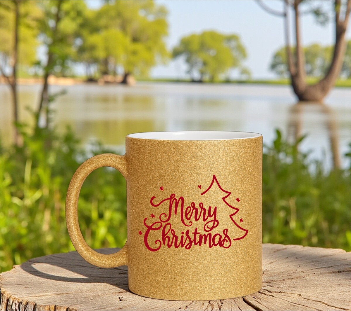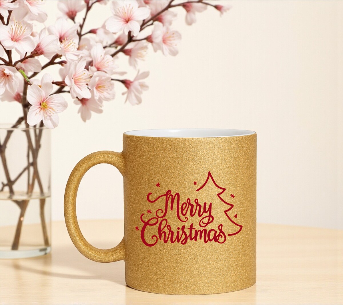 Foute kerst kofiie mok in glitter gouden opdruk met print Merry Chirstmas.