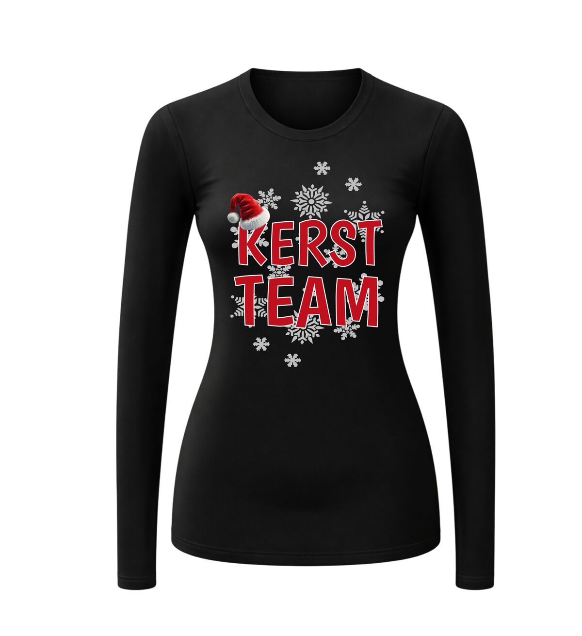 Een fraai kerst t-shirt met de tekst: "Kerst team" geheel in het kerst thema.