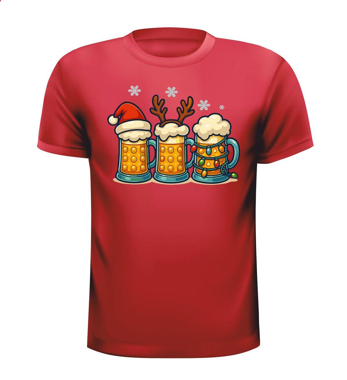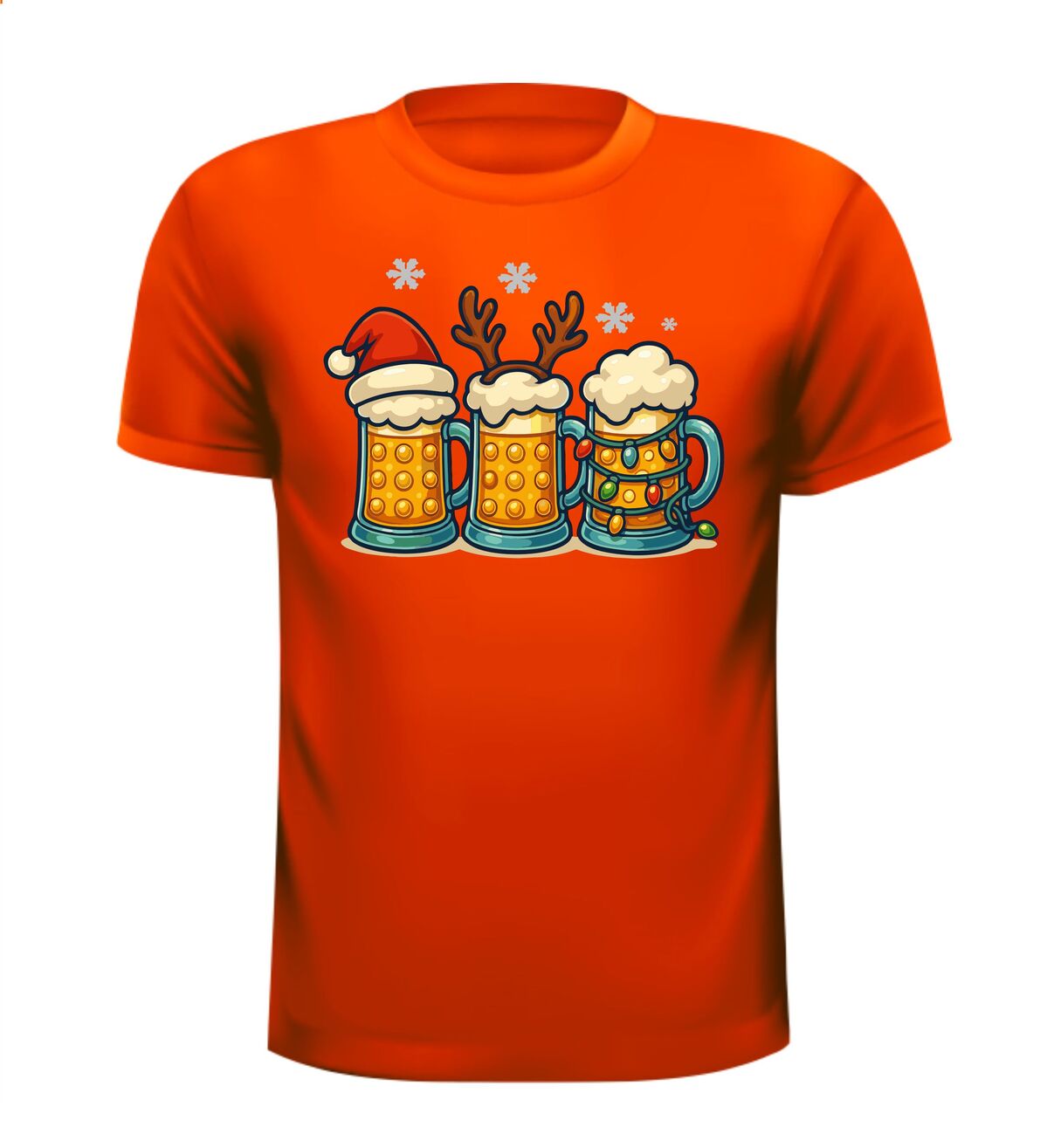 Super leuk kerst T-shirt met de opdruk van bierpullen geheel in kerst sfeer!