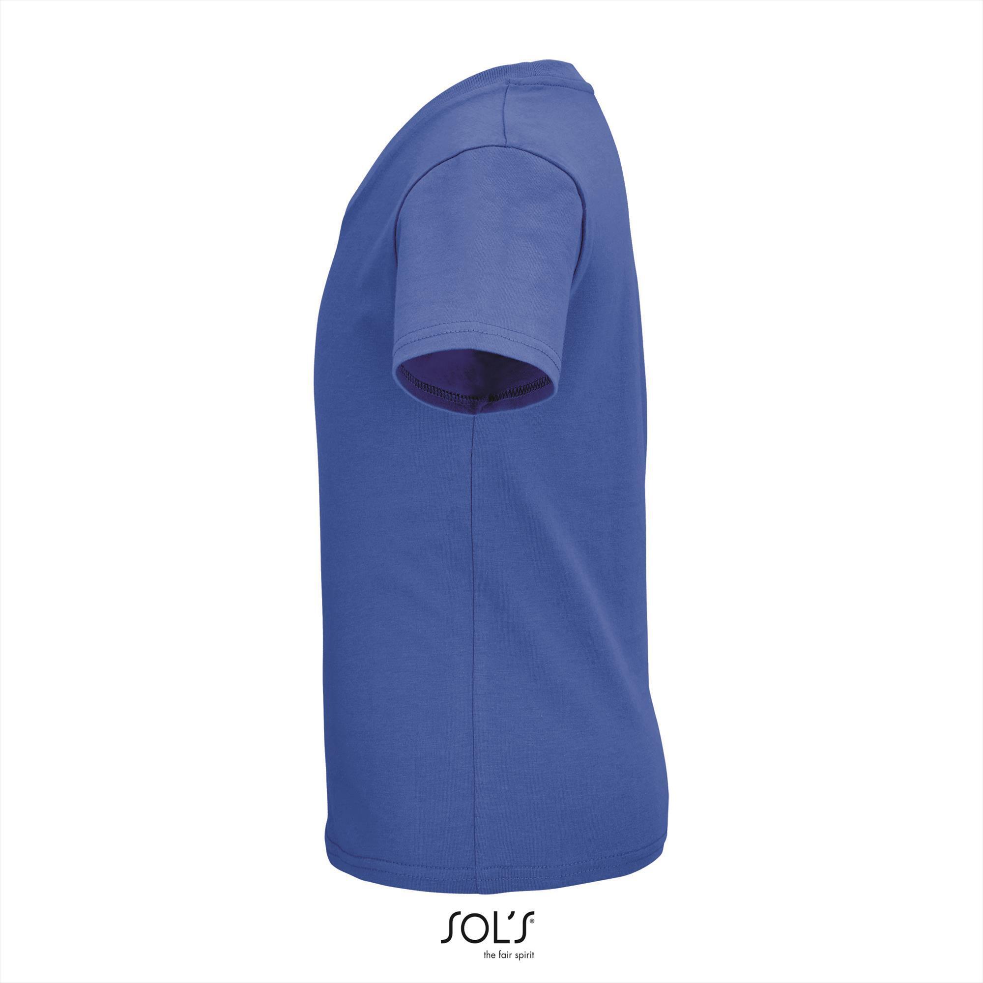 Kinder t-shirt royal blauw biologisch katoen ronde hals. Natuurlijk enzym, 1x1 rib en biologisch katoen. Merk: SOL'S Pioneer Kids. Materiaal:100% Organic katoen. Dikte: 180 g/m2. Land van herkomst:Bangladesh. Foto met jongen erop is een sfeer foto kleur buiten beschouwing houden.
