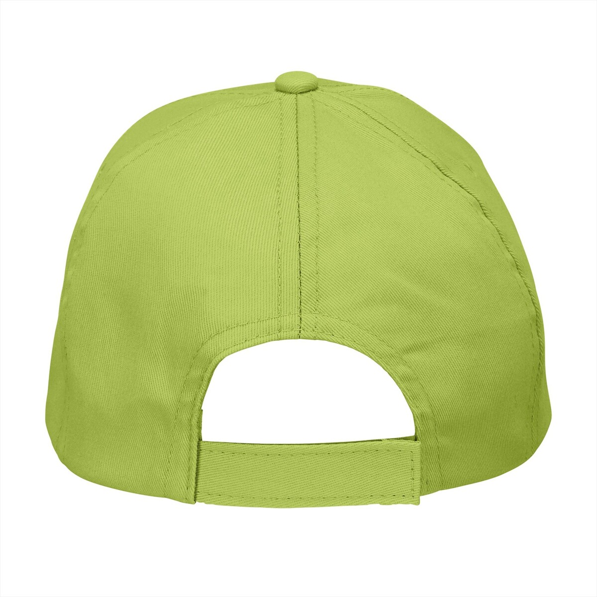 Een kinderpet met vijf panelen in de kleur appel groen, ideaal voor groepsactiviteiten, voorzien van een voorgevormde klep, twee ventilatieopeningen en een verstelbare klittenbandsluiting aan de achterzijde