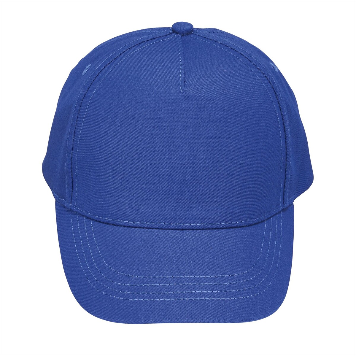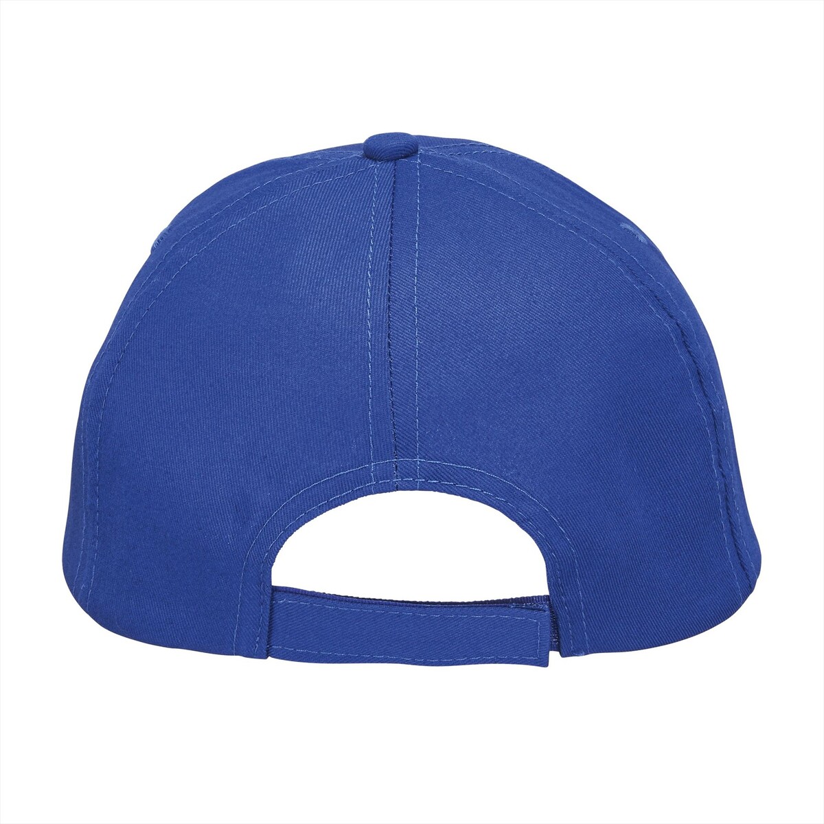 Een kinderpet met vijf panelen in de kleur royal blauw, ideaal voor groepsactiviteiten, voorzien van een voorgevormde klep, twee ventilatieopeningen en een verstelbare klittenbandsluiting aan de achterzijde