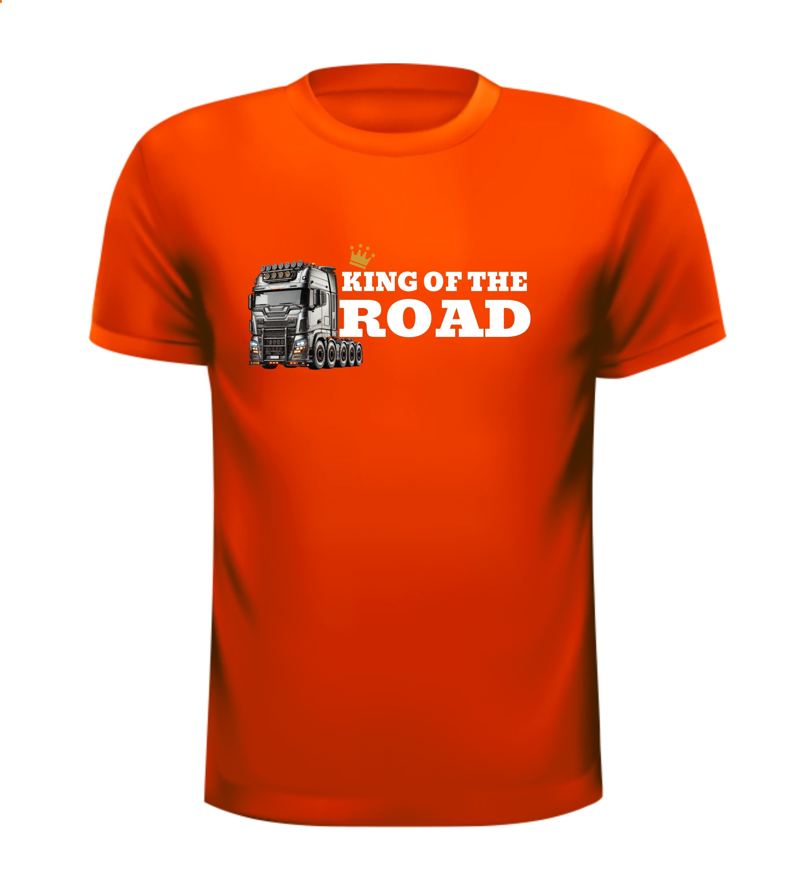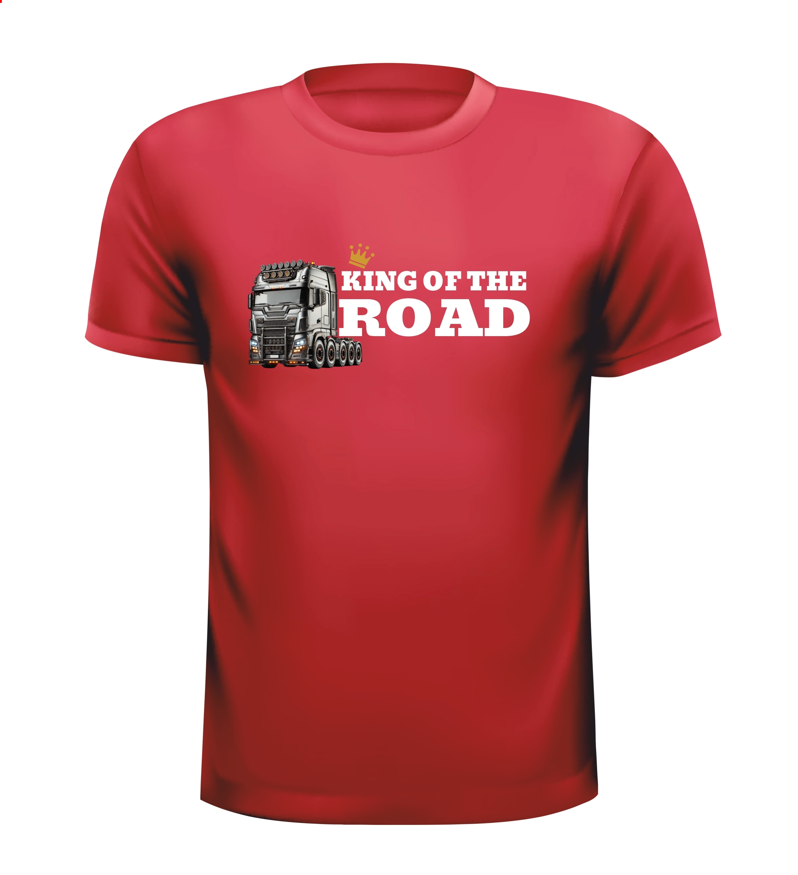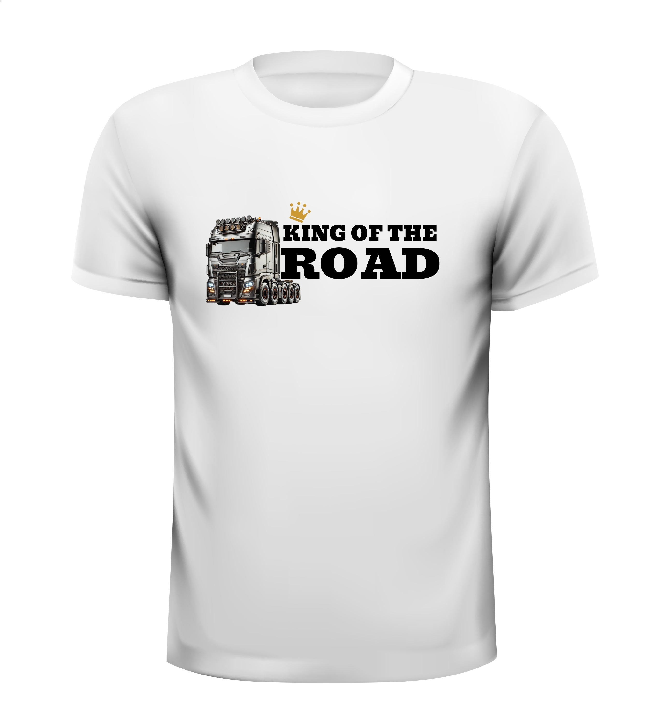 Een mooi wit T-shirt met de opdruk van een truck en de tekst ‘King of the road’ Het is ook erg leuk om dit T-shirt te personaliseren met bijvoorbeeld jouw naam erbij te zetten.