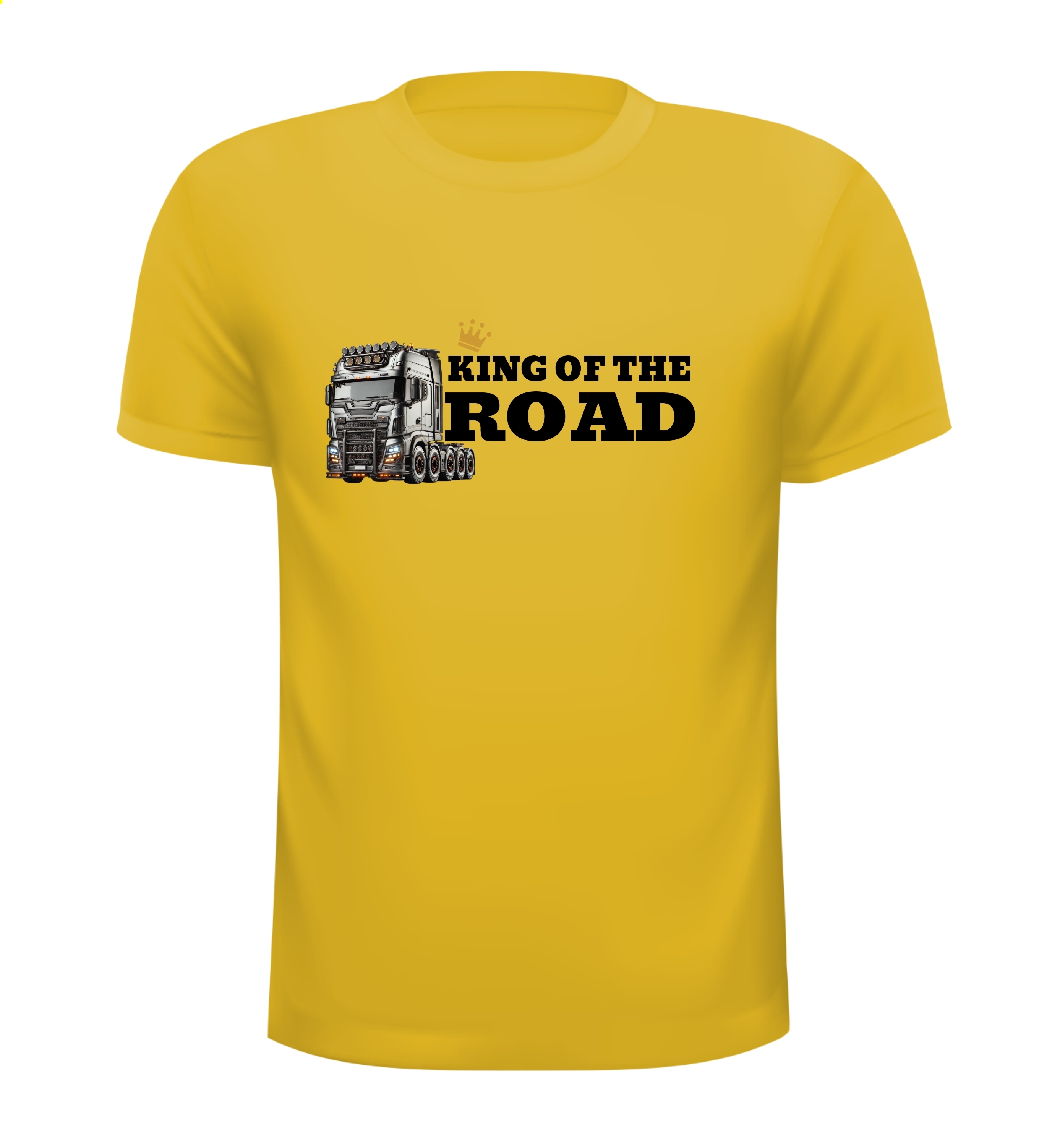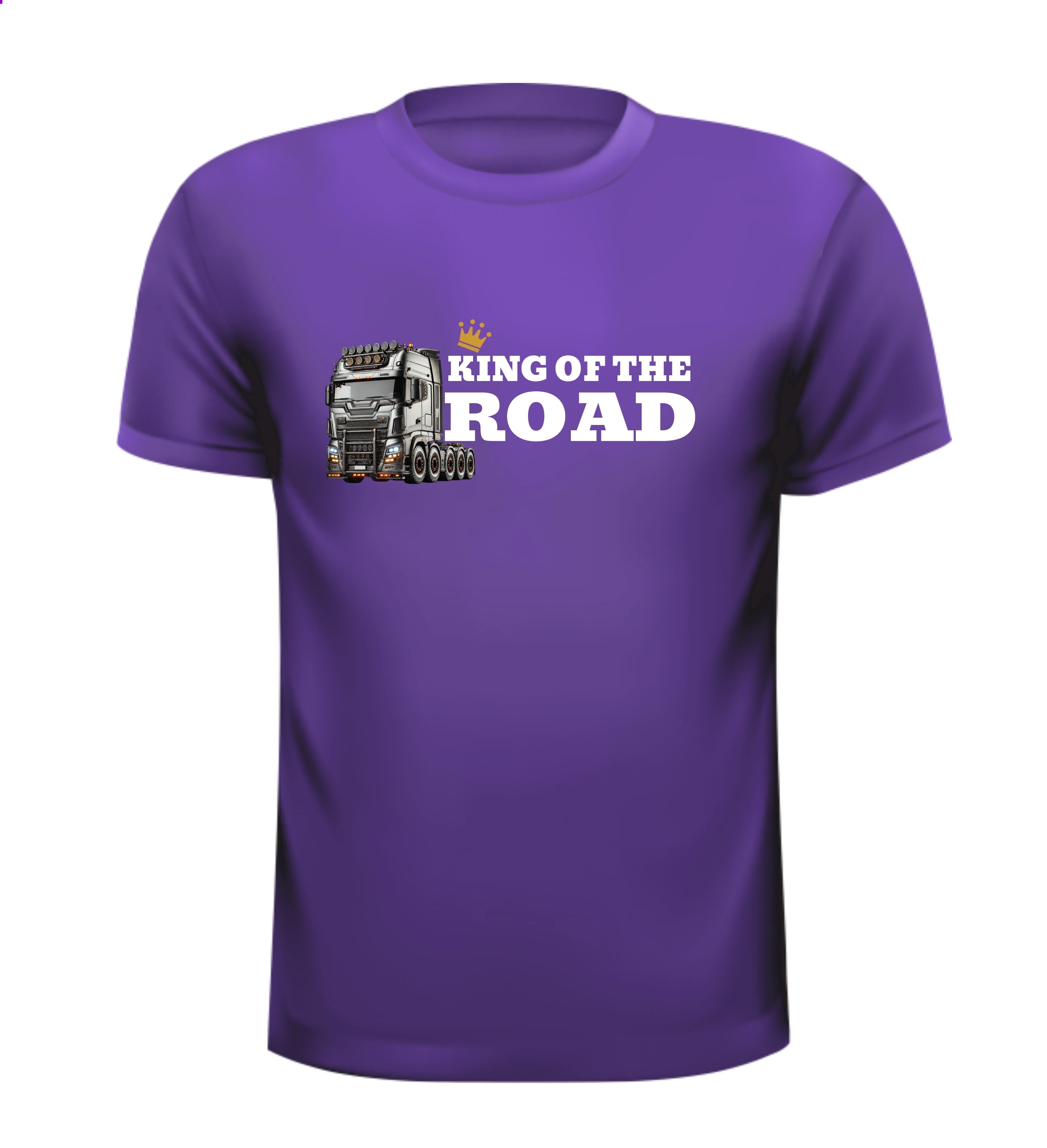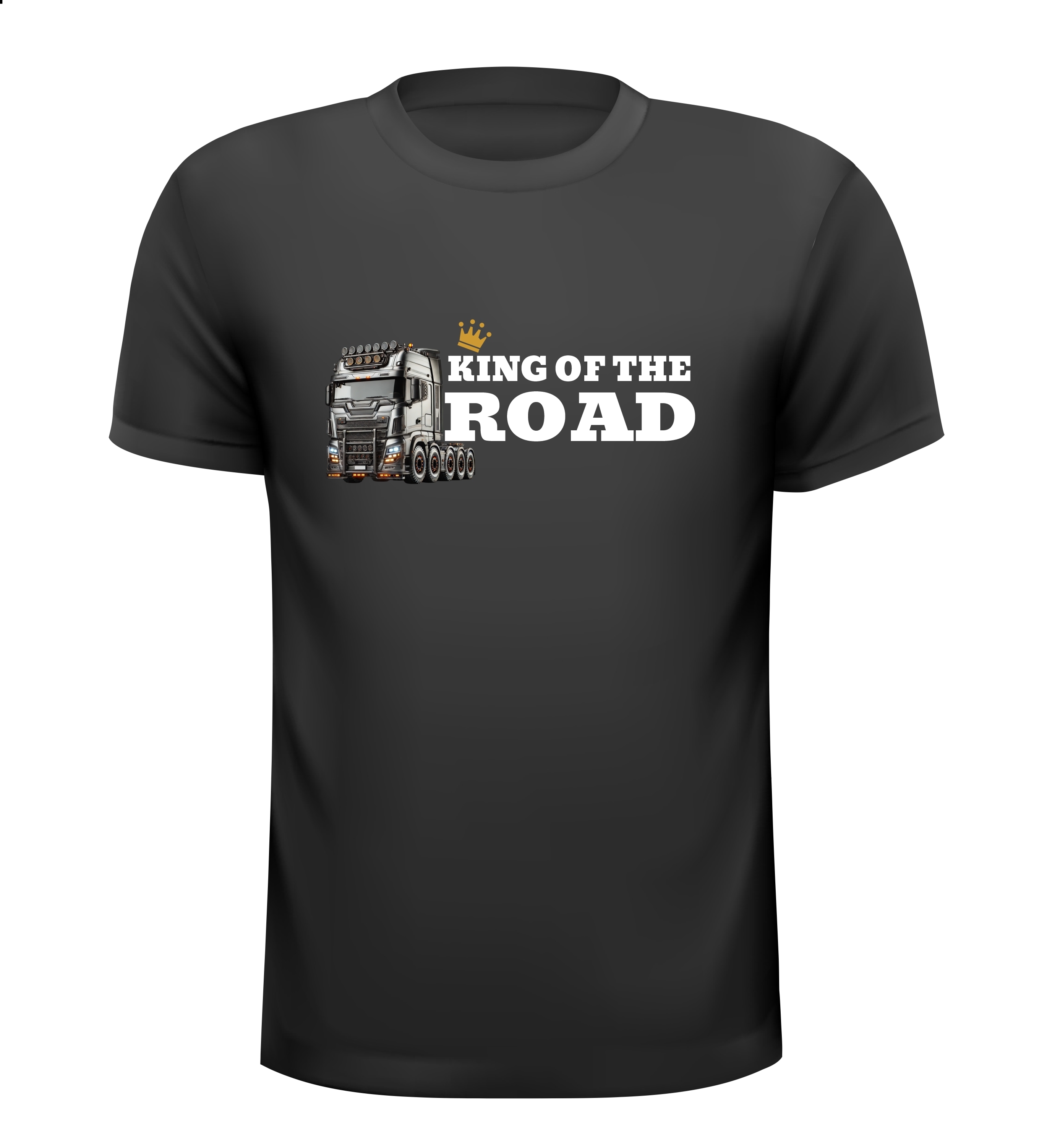 Een mooi wit T-shirt met de opdruk van een truck en de tekst ‘King of the road’ Het is ook erg leuk om dit T-shirt te personaliseren met bijvoorbeeld jouw naam erbij te zetten.